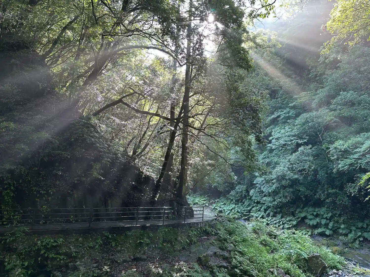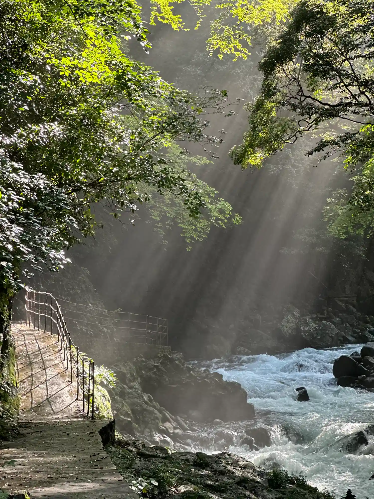 天安河原への遊歩道は、とても心地良いものでした。岩戸川まで降りてくる頃には天然のクーラーの様に心地…