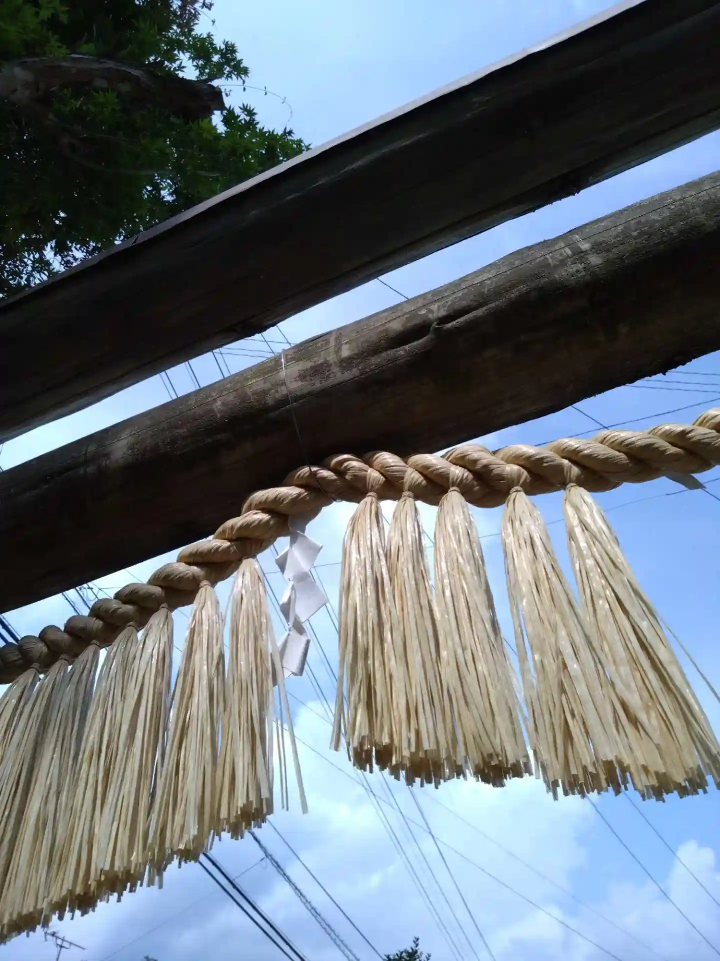 光を受けてしめ縄が輝いていました✨