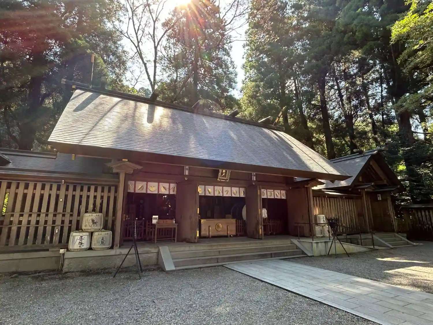 拝殿の右側に繋がって建っている建物の右側が<天岩戸>への入口。この柵から先は撮影禁止。