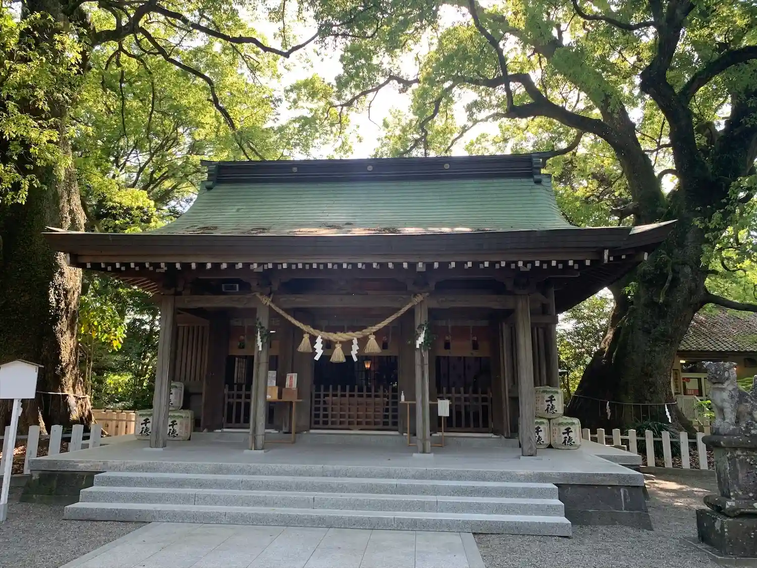 守り神の鹿の角が御神木の大楠になってるのが面白いですね。