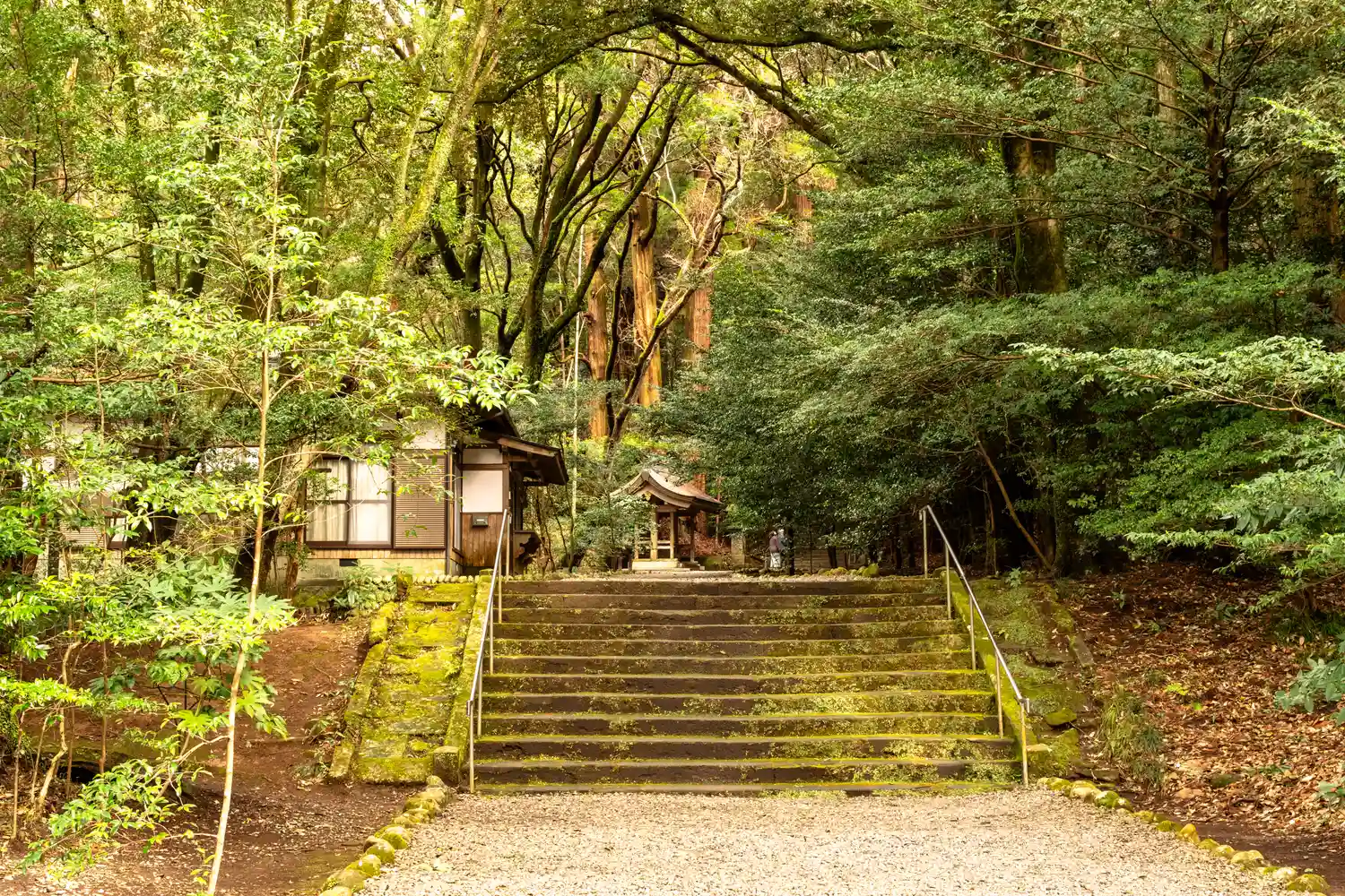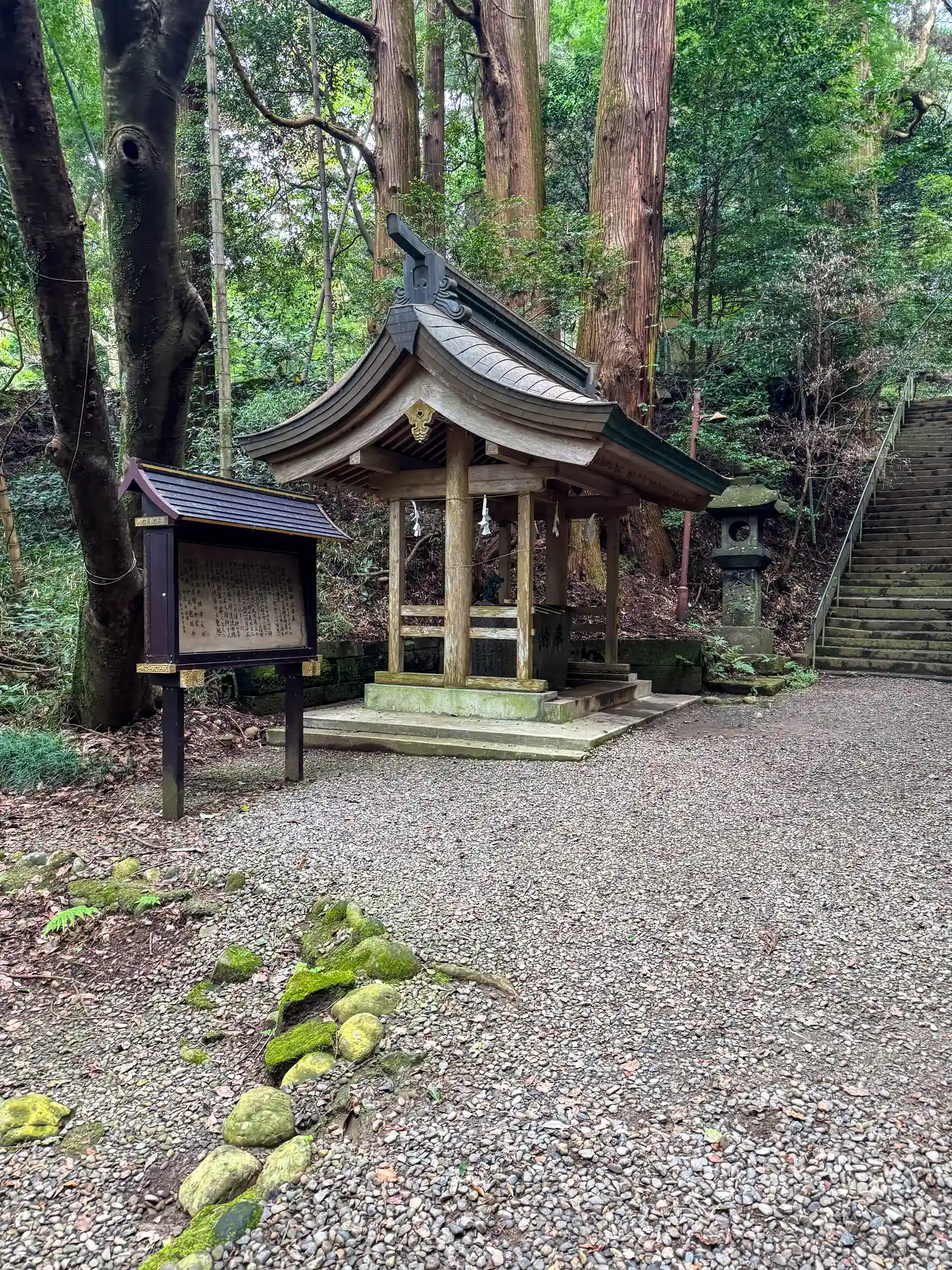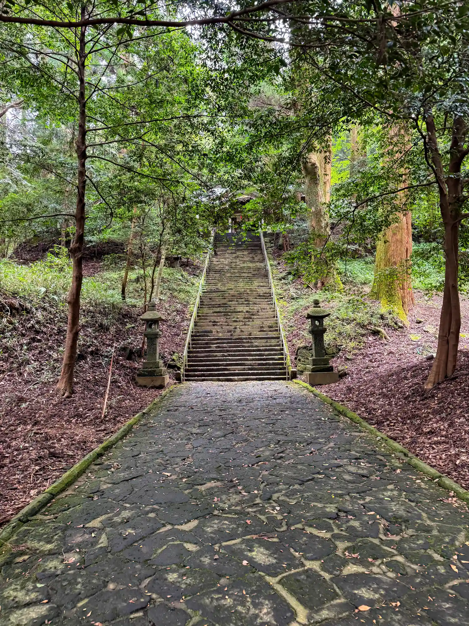 山裾の参道を直線に上がる階段も苔むして素敵で…
