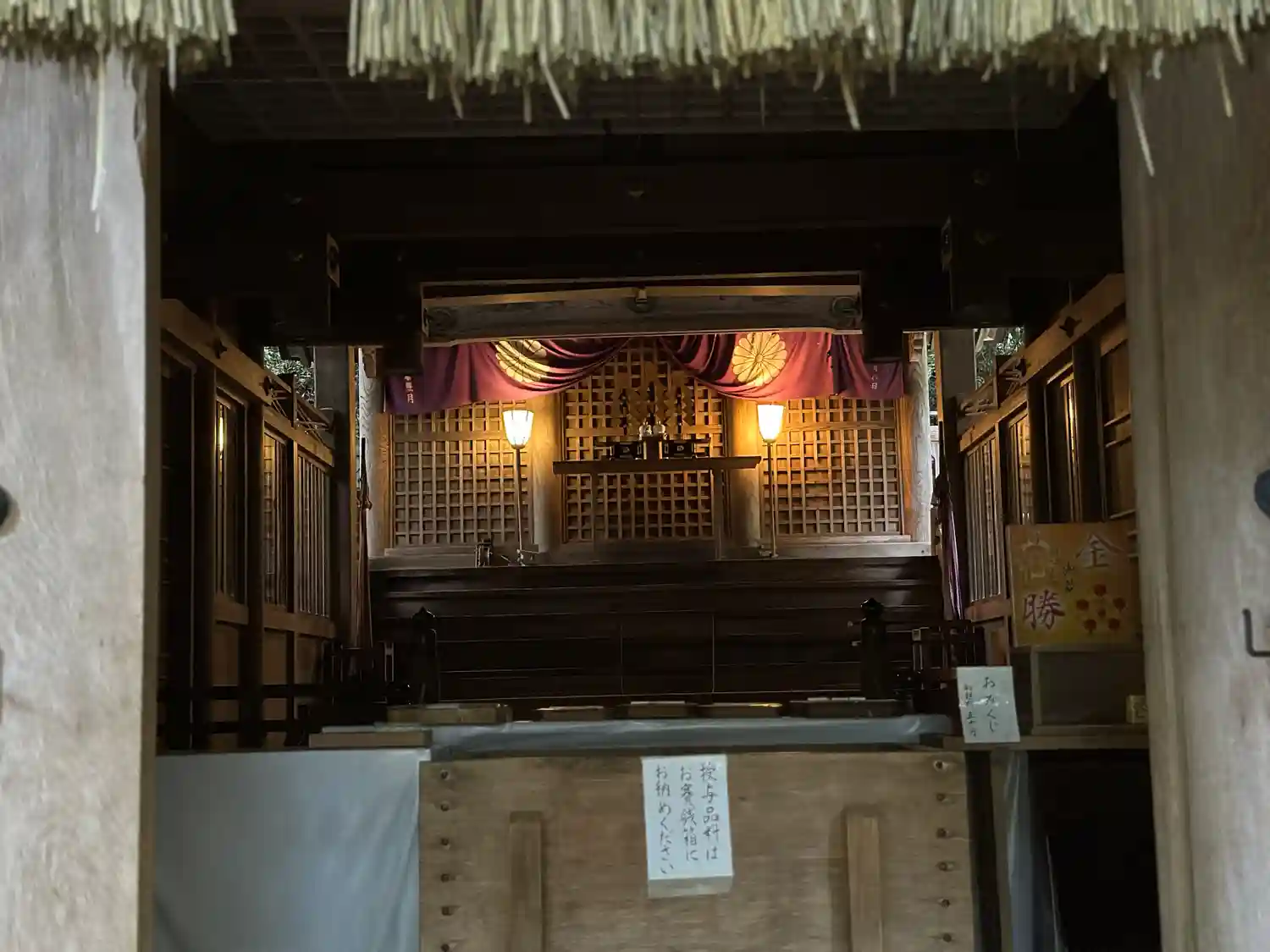<拝殿>内部。ちゃんと灯りが点くようになっている。