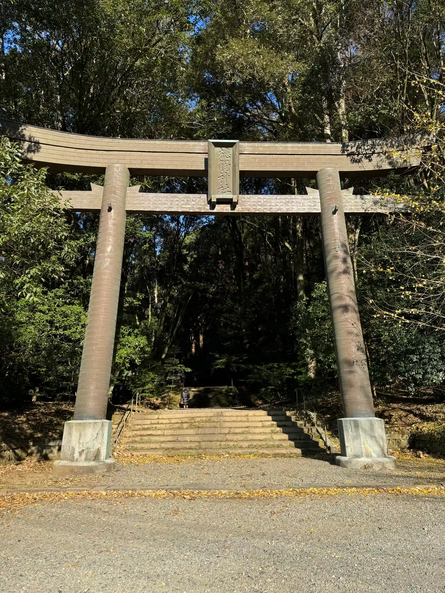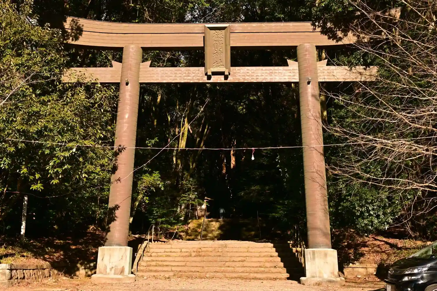 大鳥居 車道からはすぐですが、木々に囲まれた森の中です。