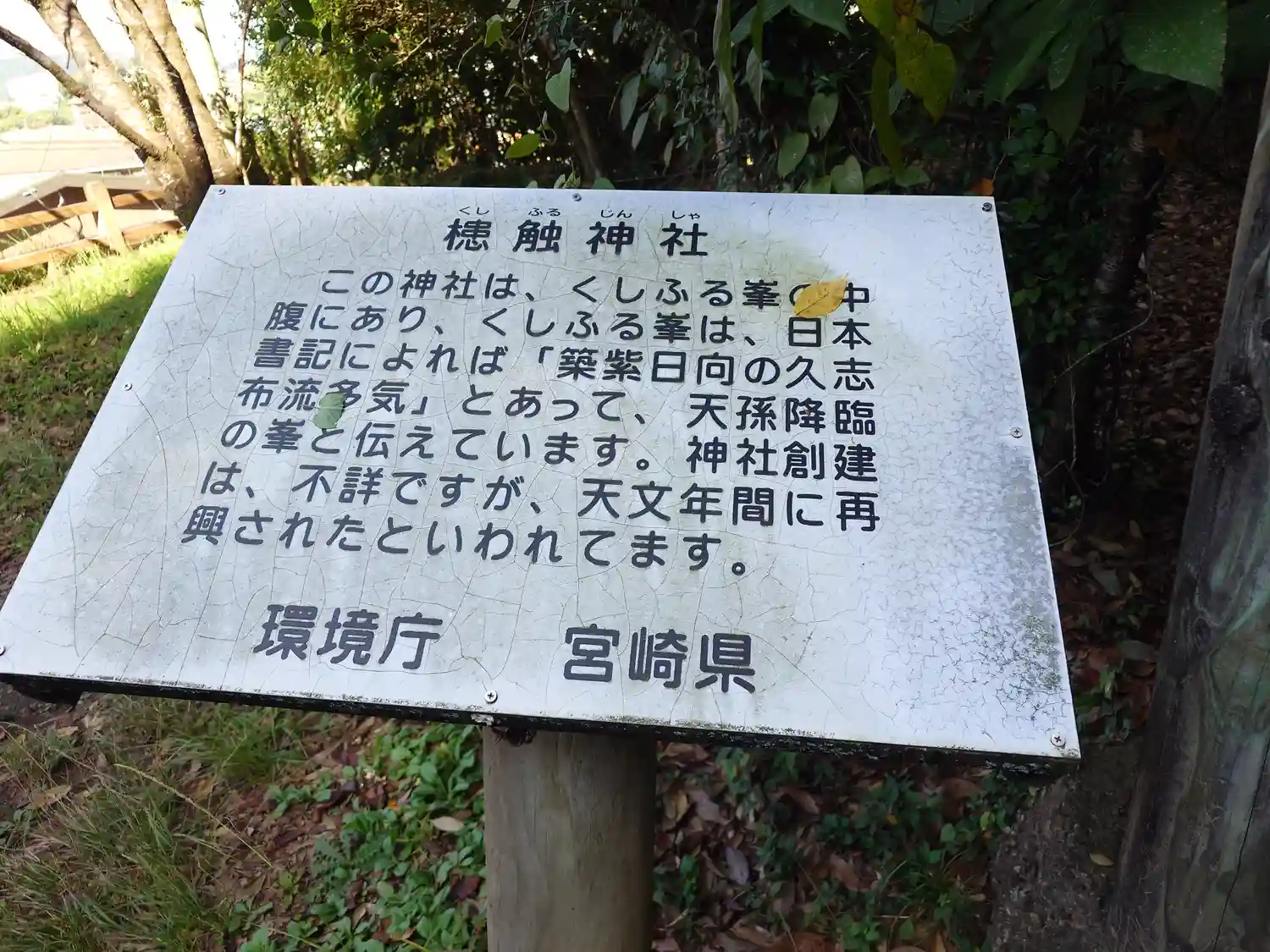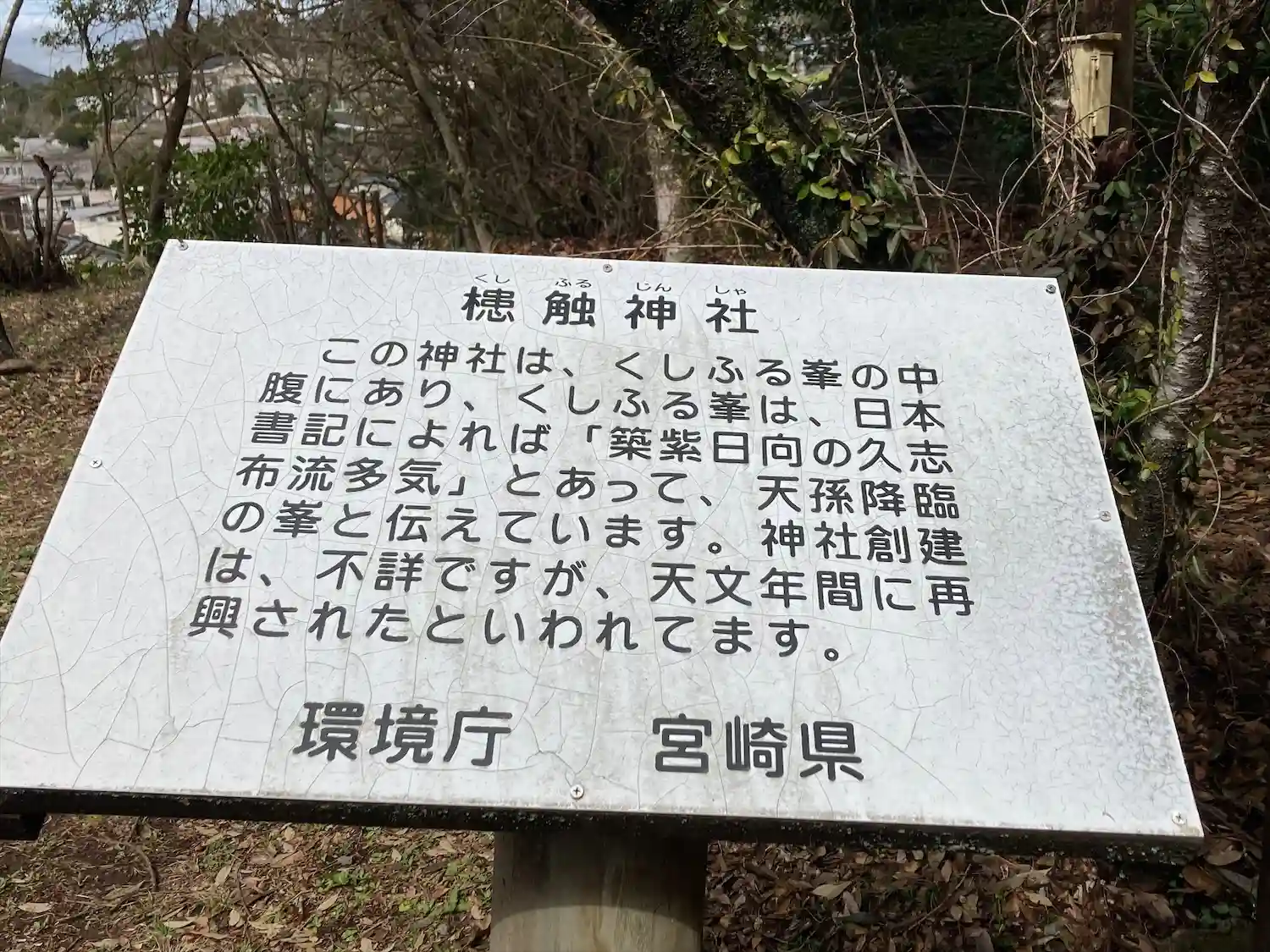 ニニギノミコトの天降り神話として、古事記に「筑紫の日向の高千穂の久士布流(くしふる)多気に天降りま…
