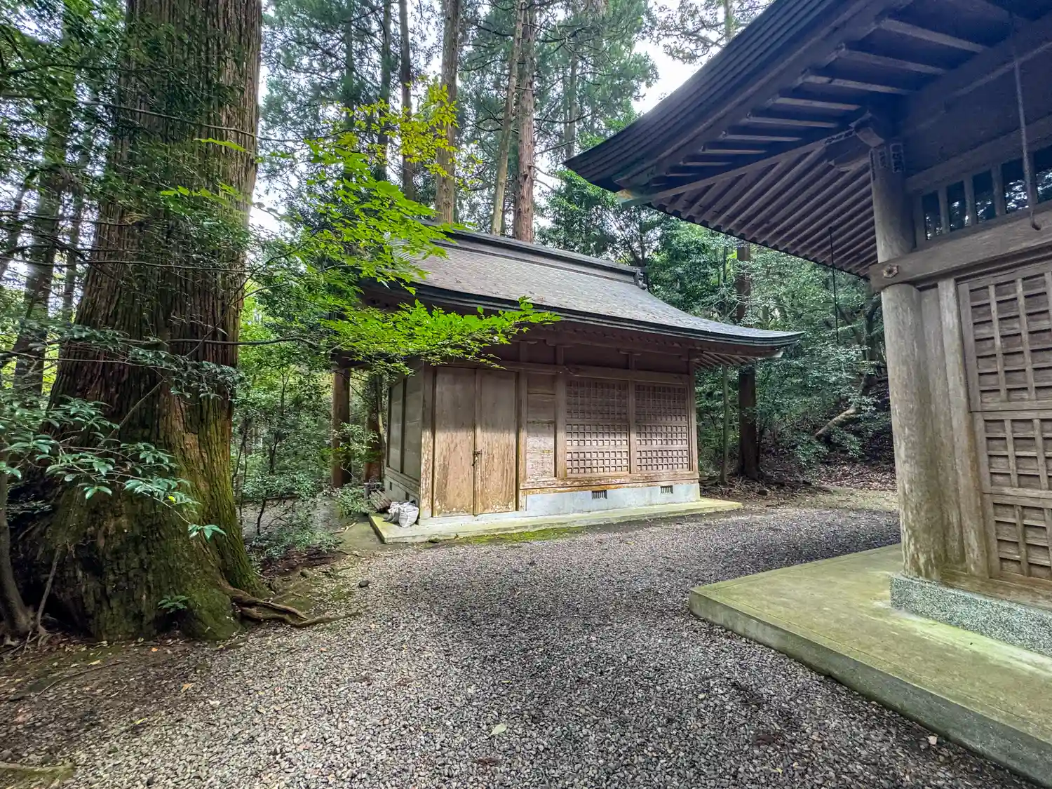 拝殿に向かって左手にある建物。表札等はないが祭器庫かな。