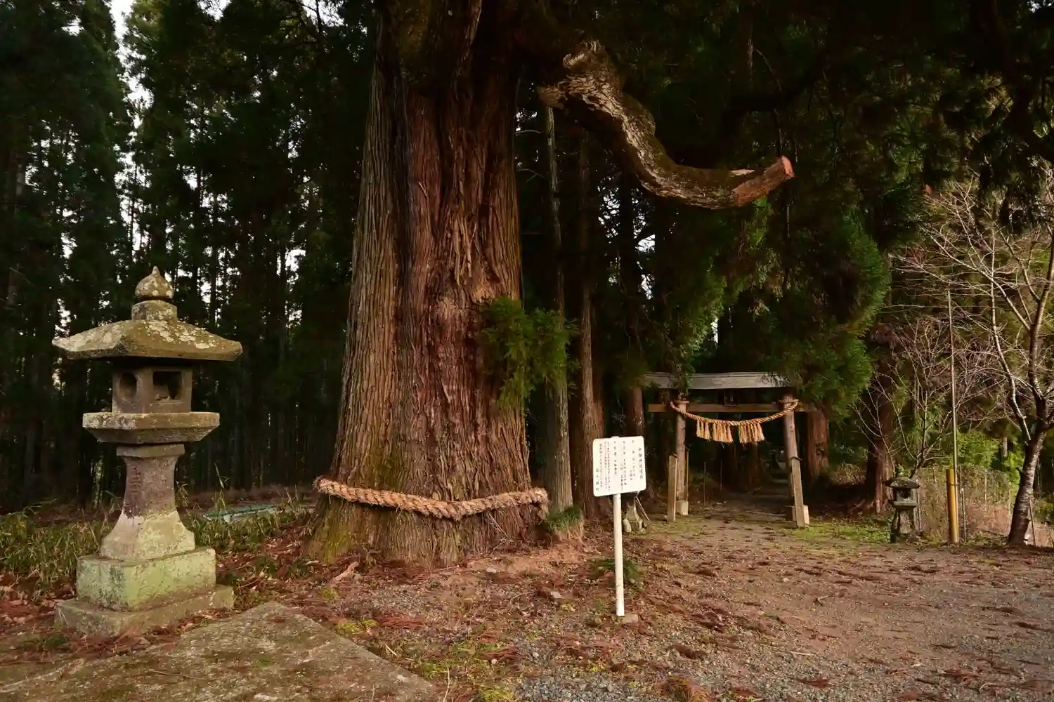 不思議な形をした杉の木が迎えてくれます。