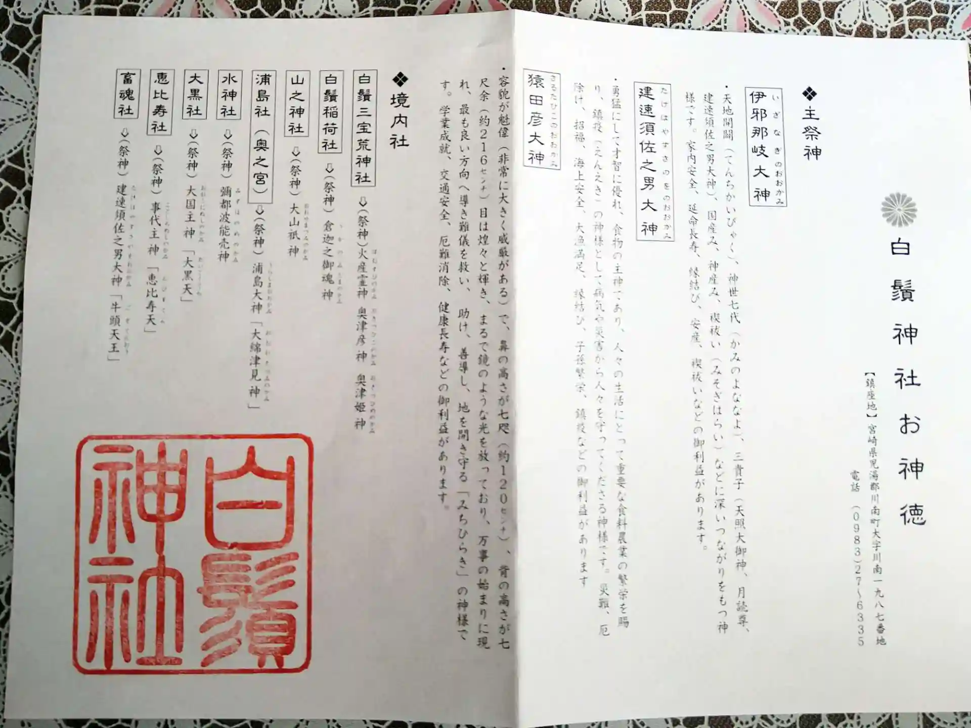 神社の御神徳に朱印が押されてます、神様方の名前も有り、御朱印と言っても良いと思います