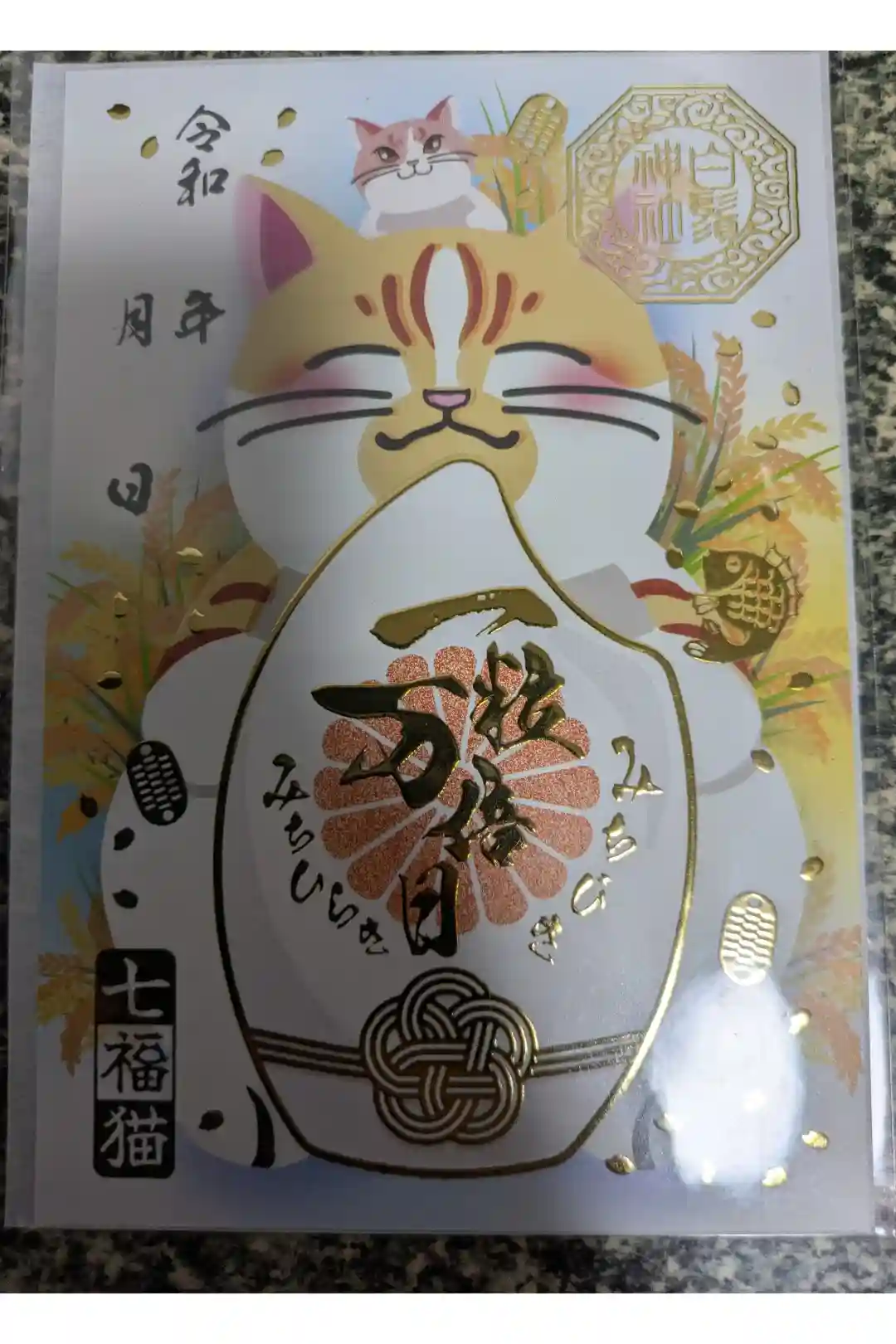 【一粒万倍日 -七福猫 るんるん - 厚盛金箔調 限定御朱印】