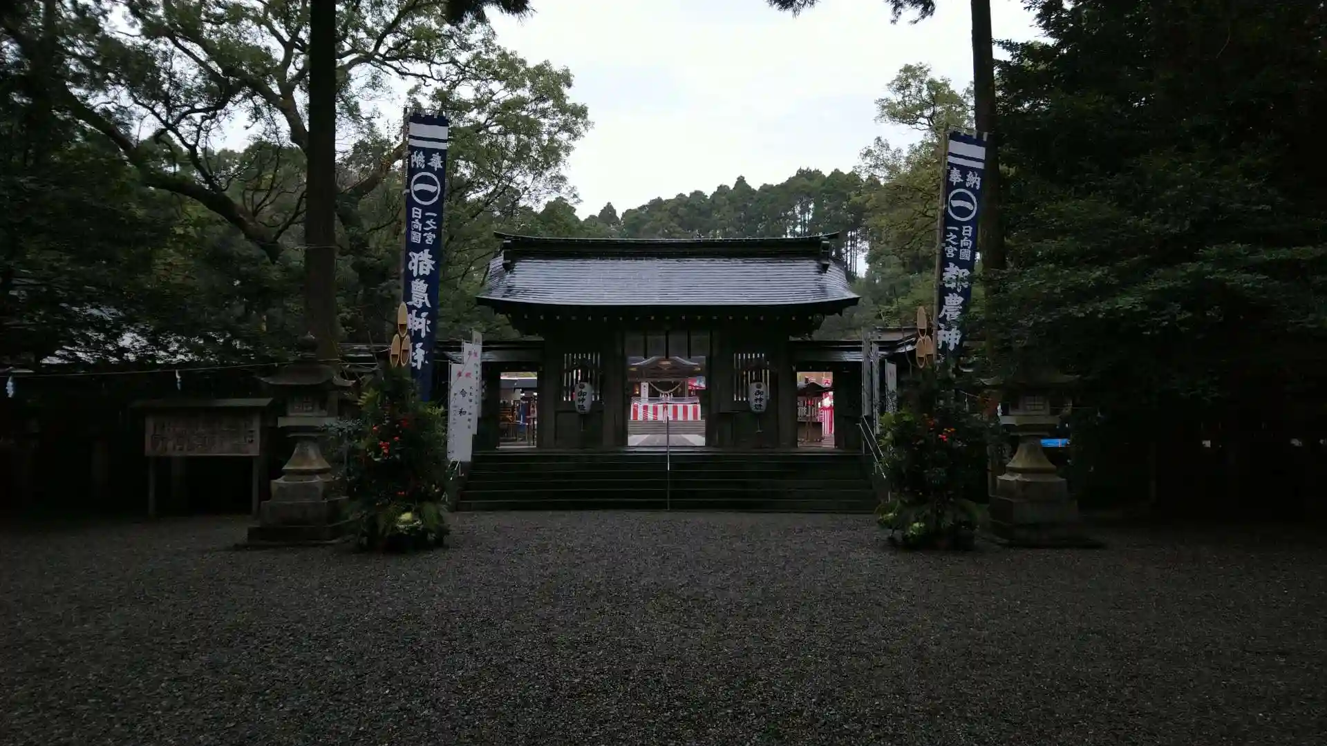 宿泊した延岡から思ったより時間がかからなくて到着は9時前でしたが、ご朱印をいただけました。正月の準備が進められ、門松も飾られています。