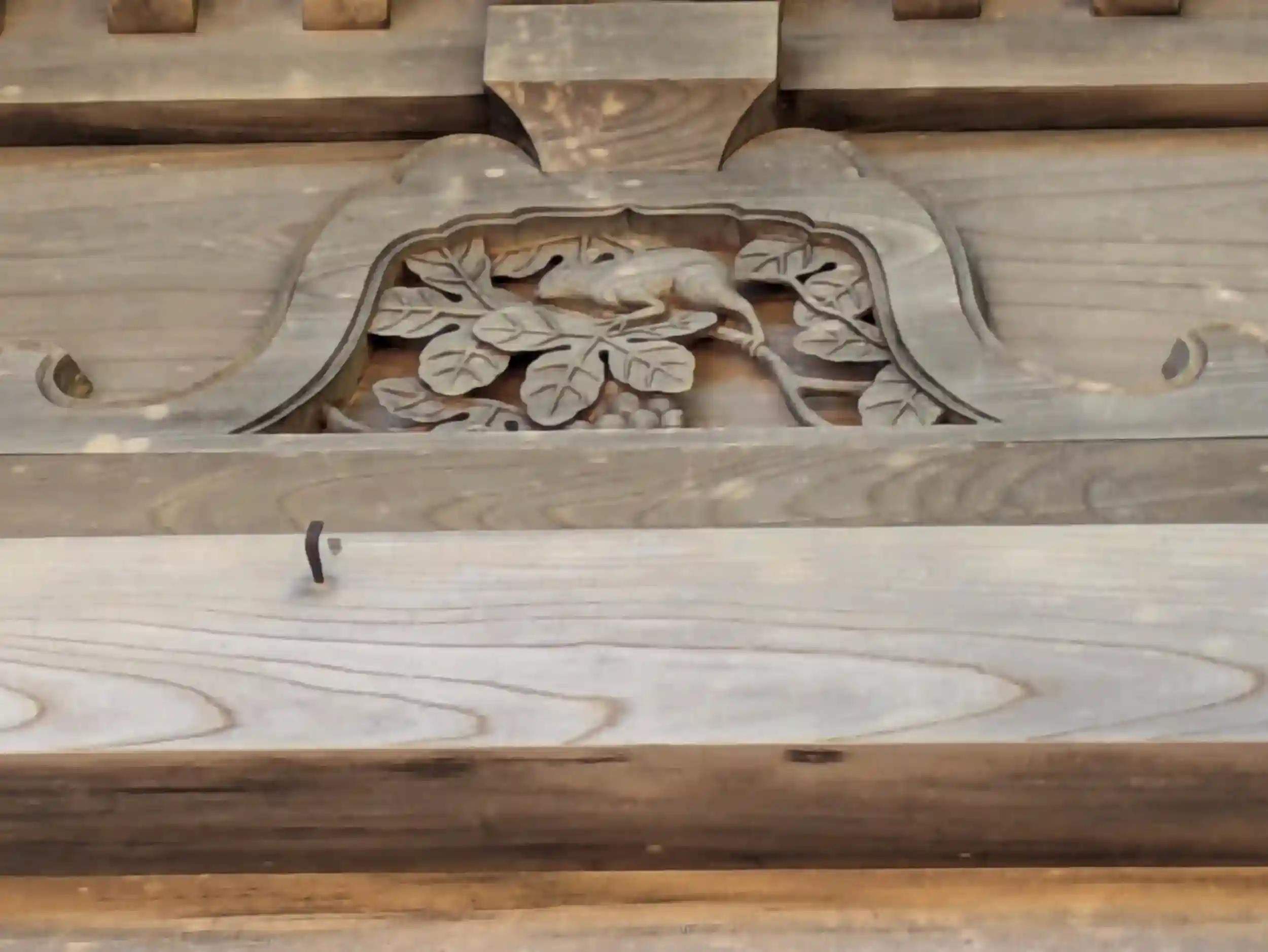 本殿を一周し木で掘ってあるねずみさんを探し!