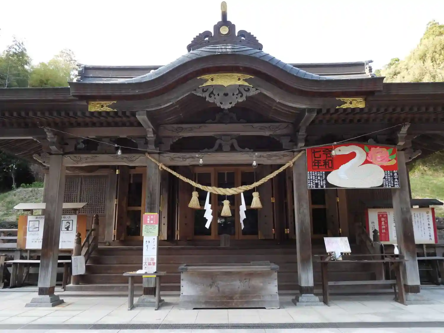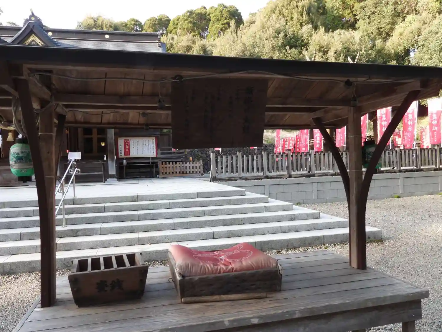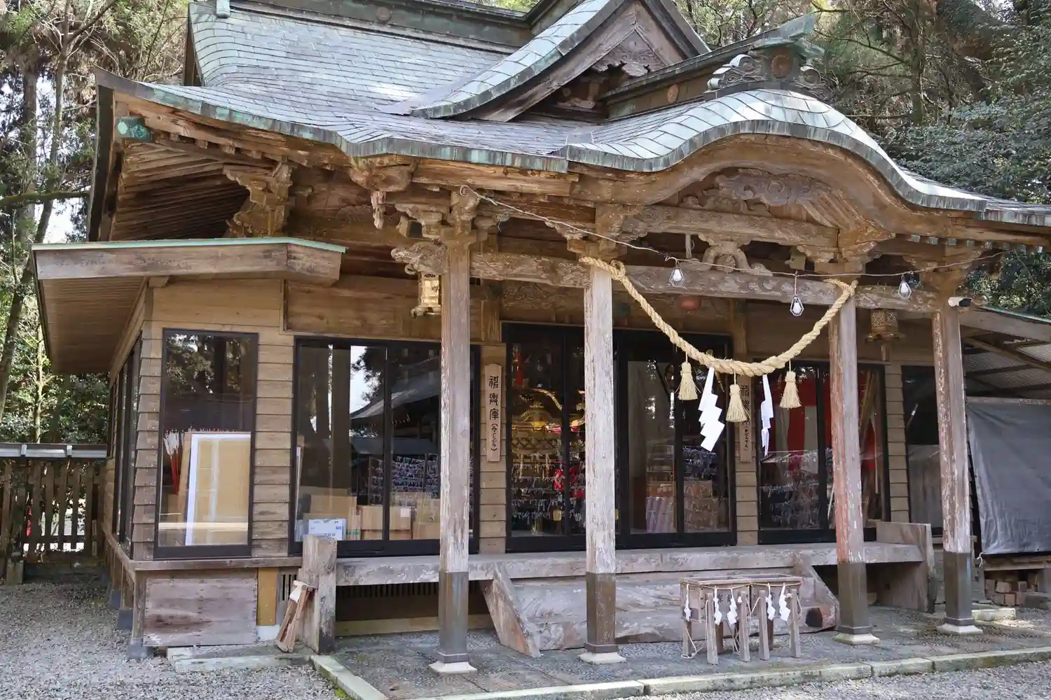 臨時授与所の御朱印コーナーから見た<社殿>全景。