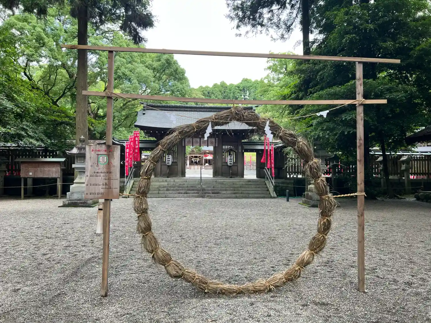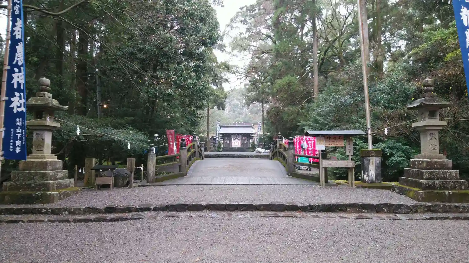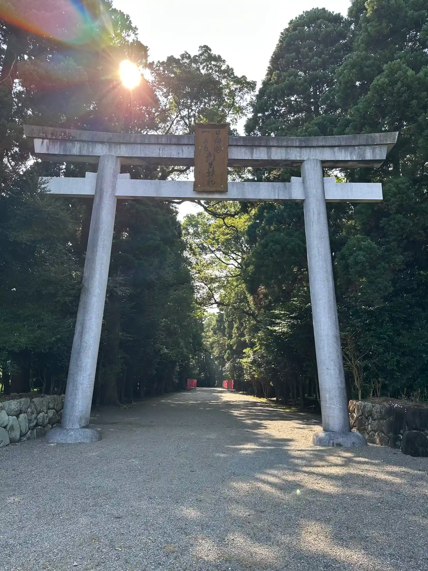 鳥居をくぐって参道を進む。日向國の神社では参道は注連縄で区切られているみたい。