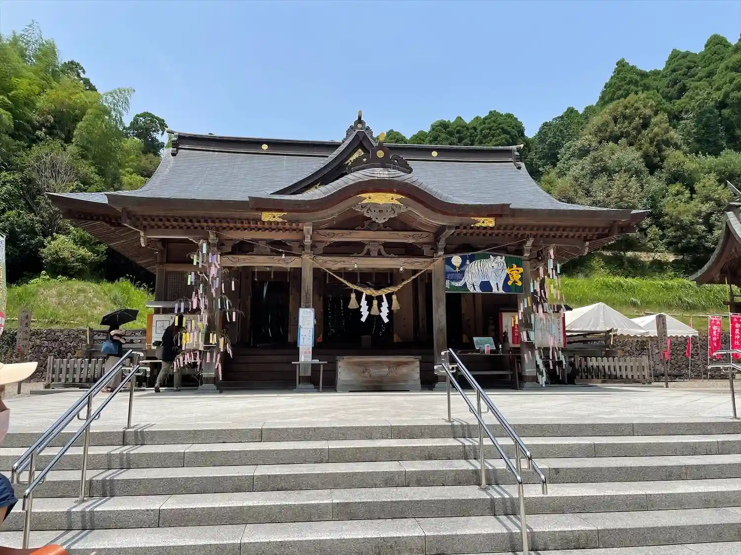 参道右側には巨大な<臨時授与所>。左端の一番社殿に近いところで御朱印を拝受できる。