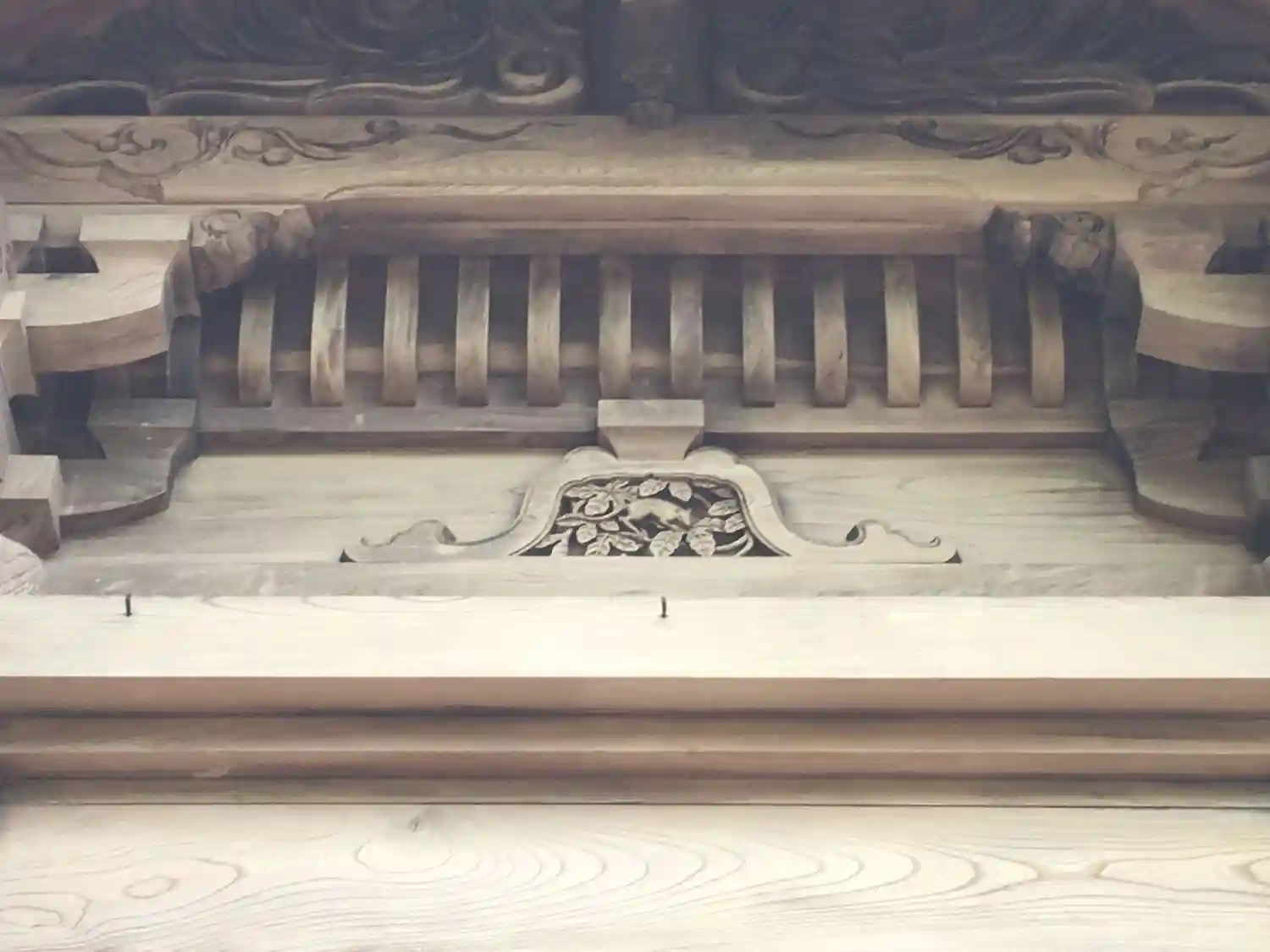 御社殿左側に神の使いとされるネズミの彫刻があります。