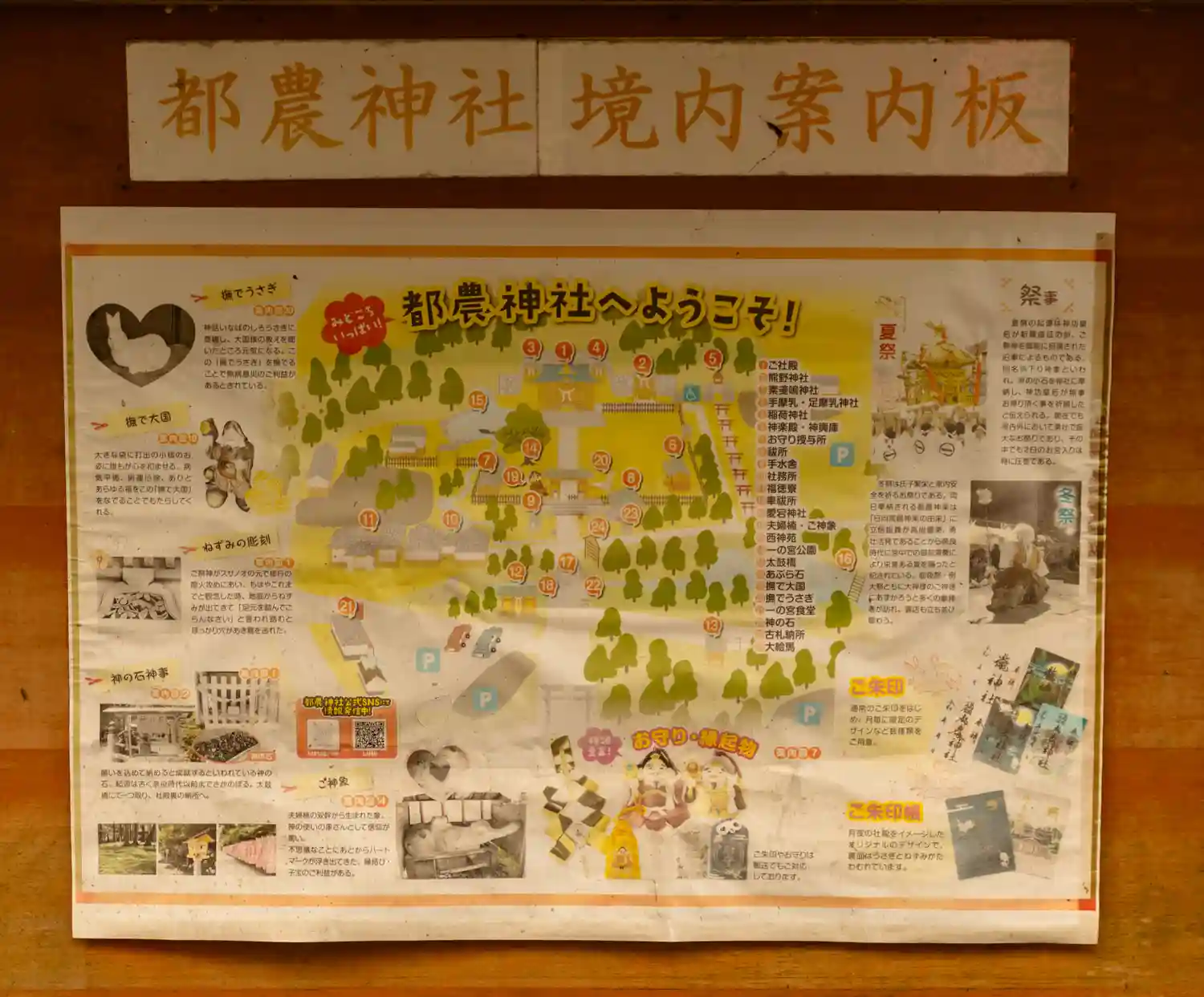 白兎をかたどった「撫でウサギ」は大黒様が助けた「因幡の白兎」の物語が基になっています。ウサギがサメに皮をはぎ取られて苦しんでいる時に大黒様の助言で治癒したことから、このウサギを撫でると無病息災のご利益があるといわれています。