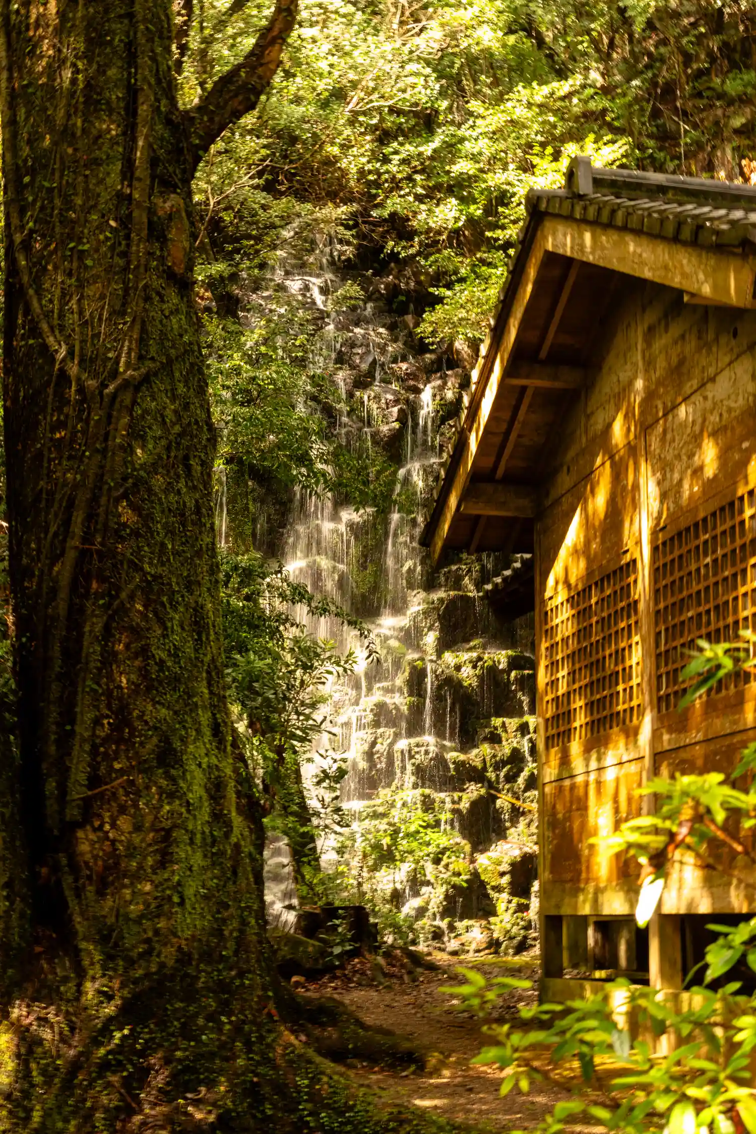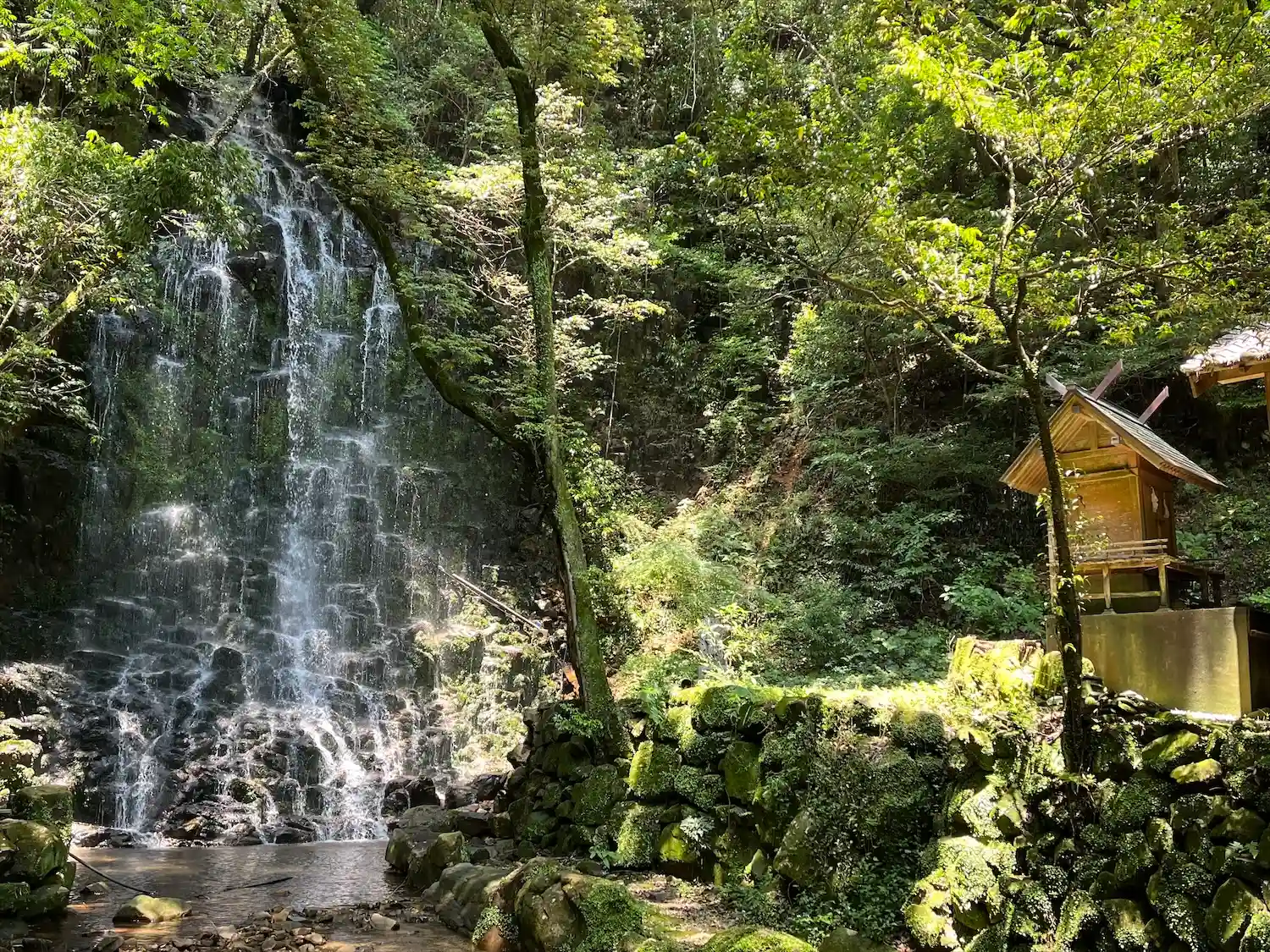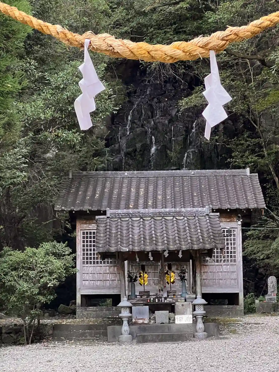 本殿の背後にある不動の滝。