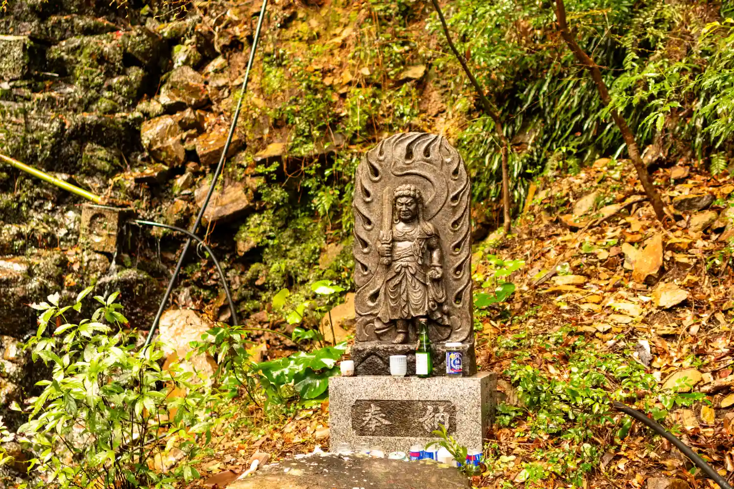 ロウソクと線香、他にお酒のお供え物がありました。