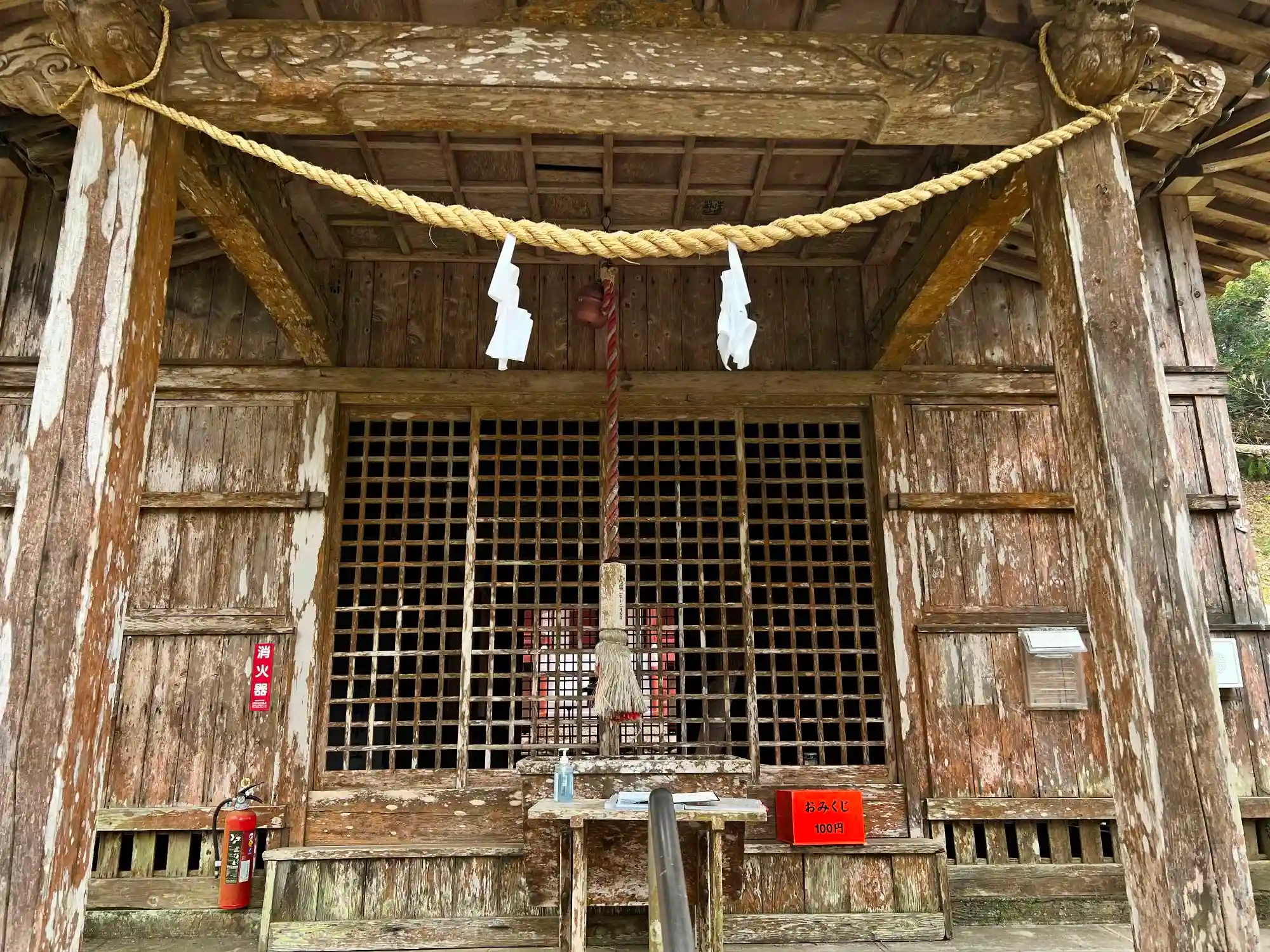 <拝殿>正面。扁額や表札はなし。無人だがちゃんと扉は開いている。100円のおみくじもある。