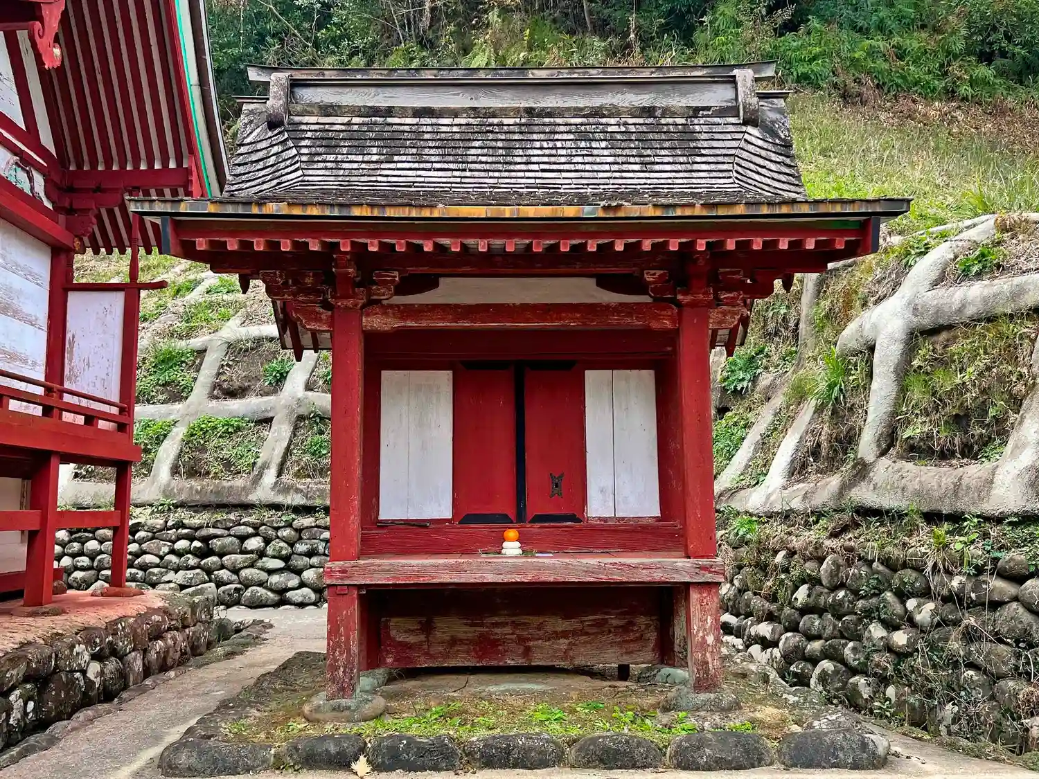 本殿の右側にある摂社<今宮社>。本殿が改修された1981年と同時期に改修。一間流見世棚造。