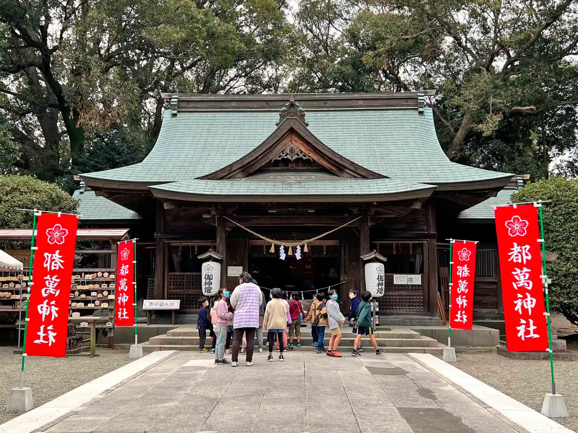 最後に社殿を見てから帰ろうとすると、小学校低学年と思しき集団が参拝にやって来た。(^▽^)/