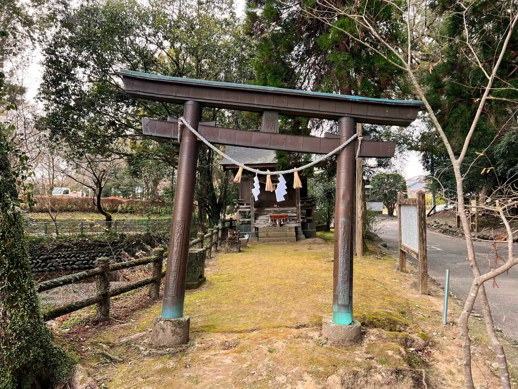拝殿に向かって右手少し離れたところにある境内社の鳥居。