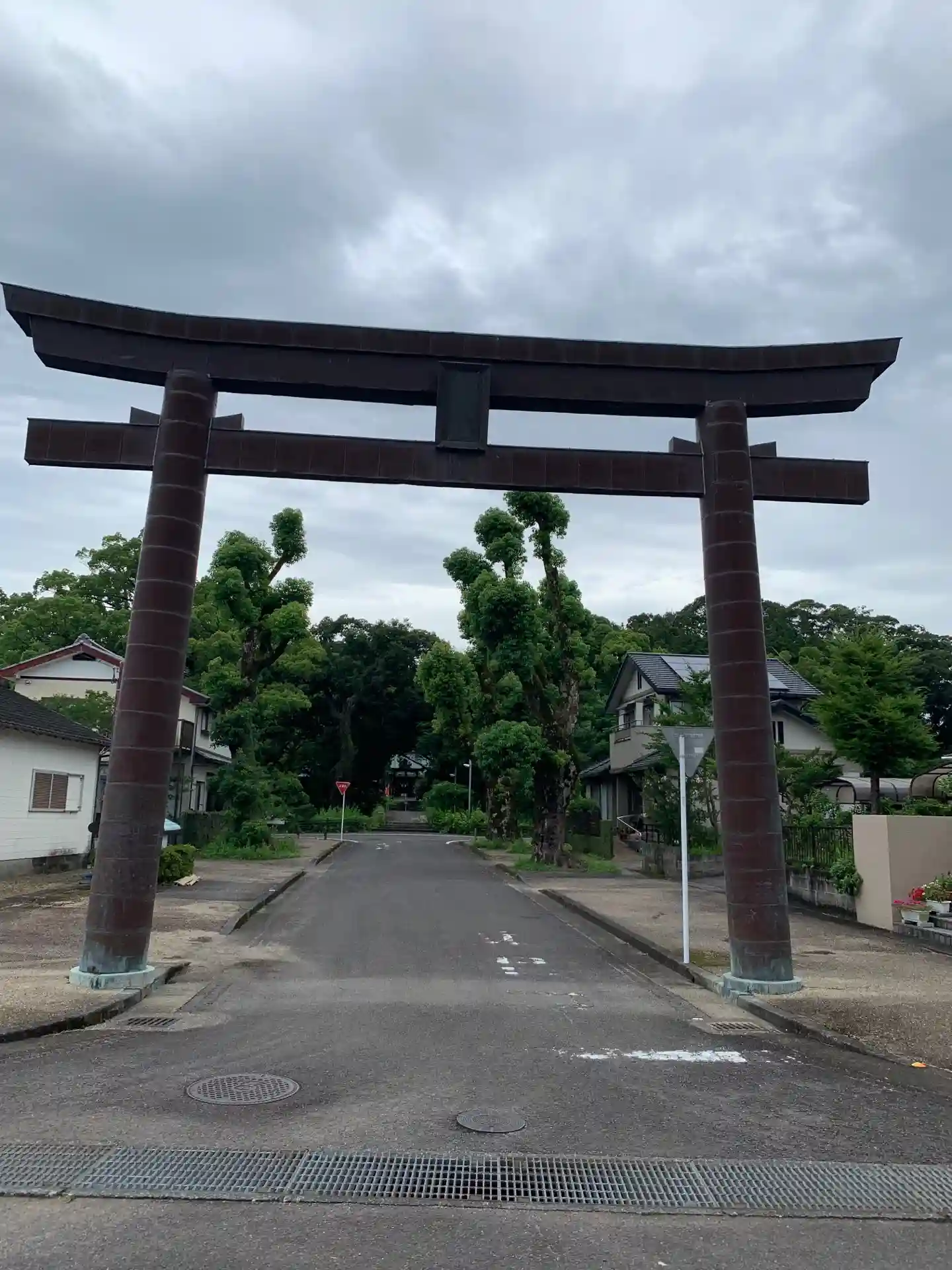 境内東方の住宅街の中にある、巨大な<一の鳥居>。