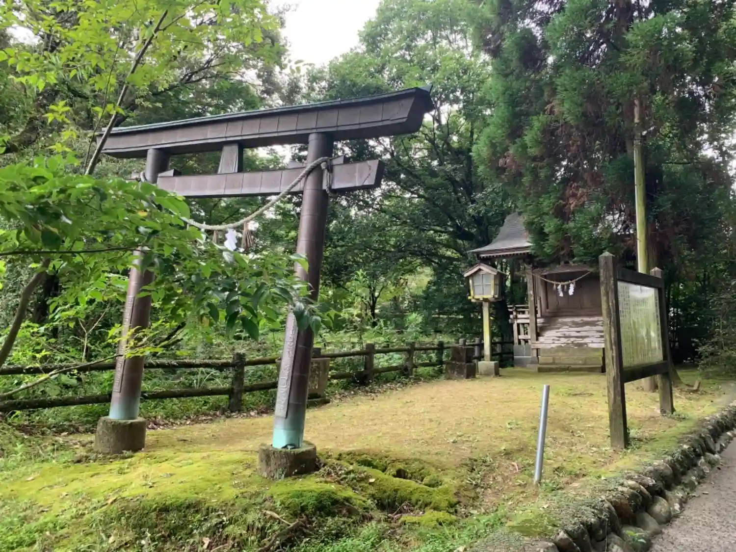 拝殿に向かって右手少し離れたところにある境内社の鳥居。 背後には<霧島神社>(左)と<四所神社>(右)がある。