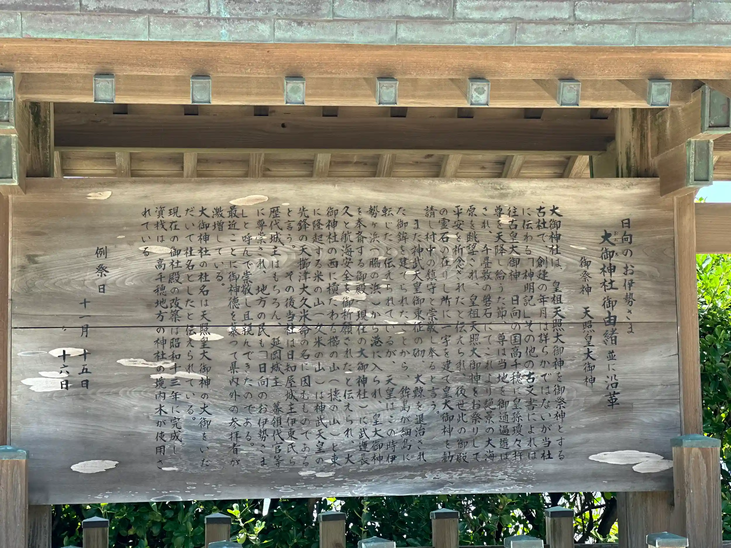 その後、当社は日知屋城主伊東氏ら歴代城主はもちろん、延岡城主、幕領代官等に尊崇され、地方の民も「日向のお伊勢さま」と呼んで崇敬し、且つ親しんできたのである。