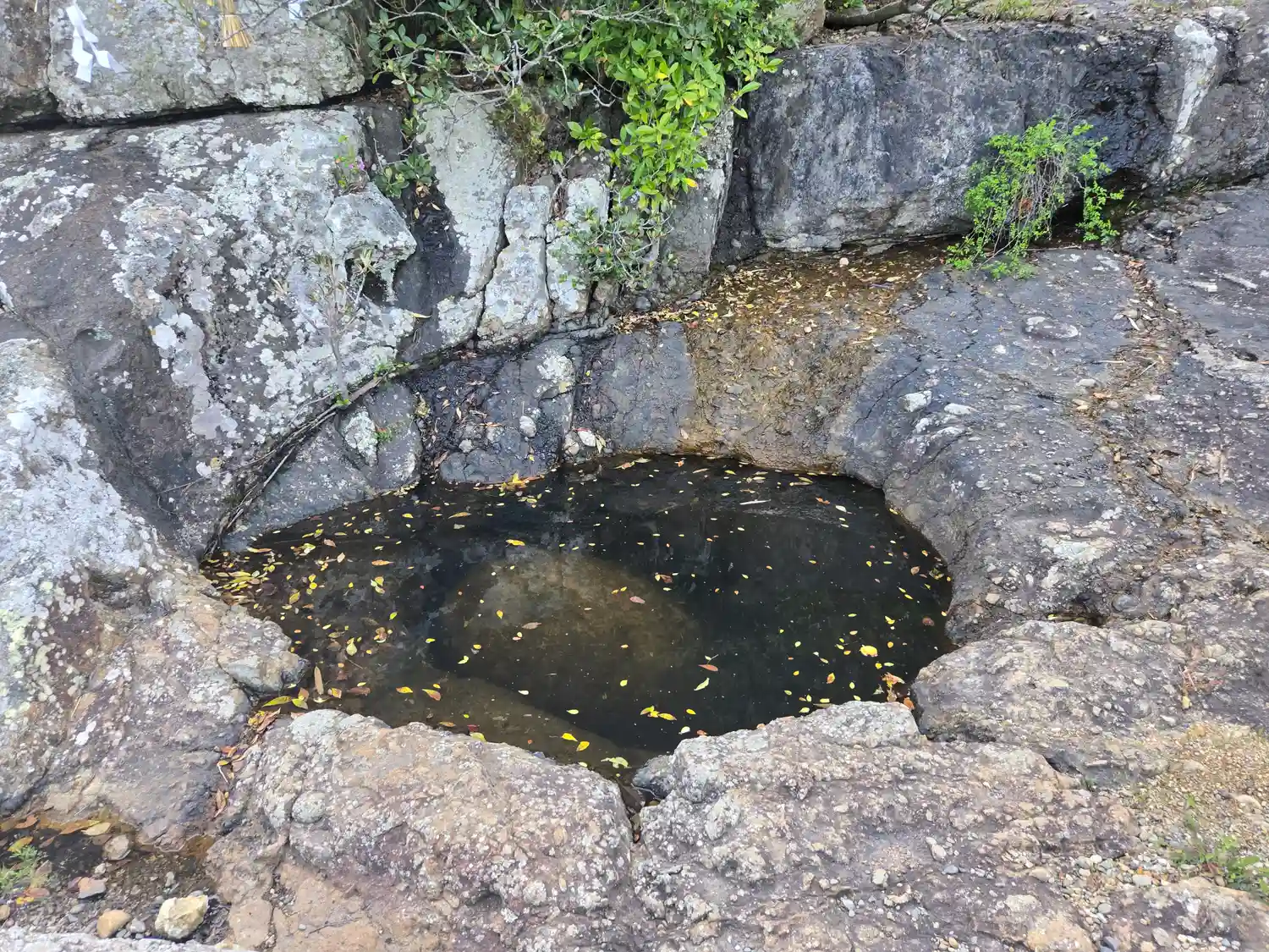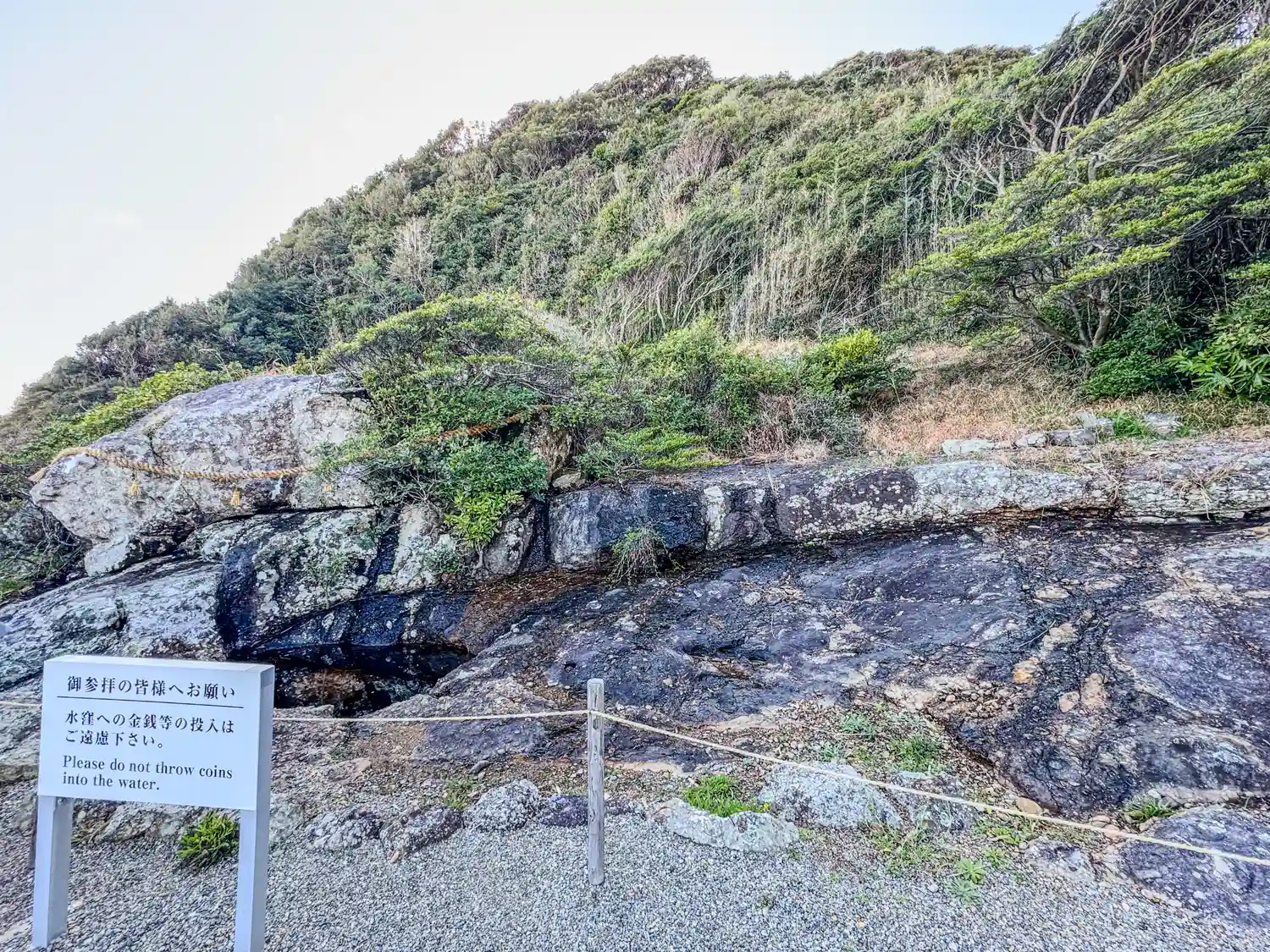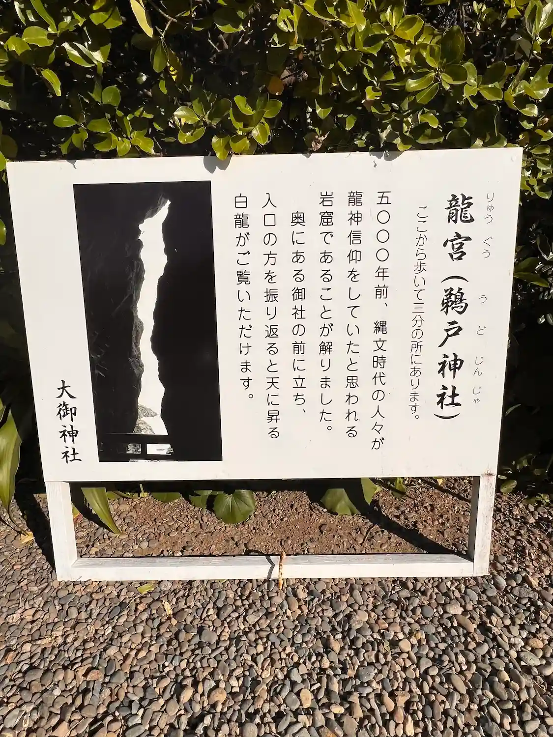 右側の岩窪は縄文時代の龍神信仰の古代遺跡。