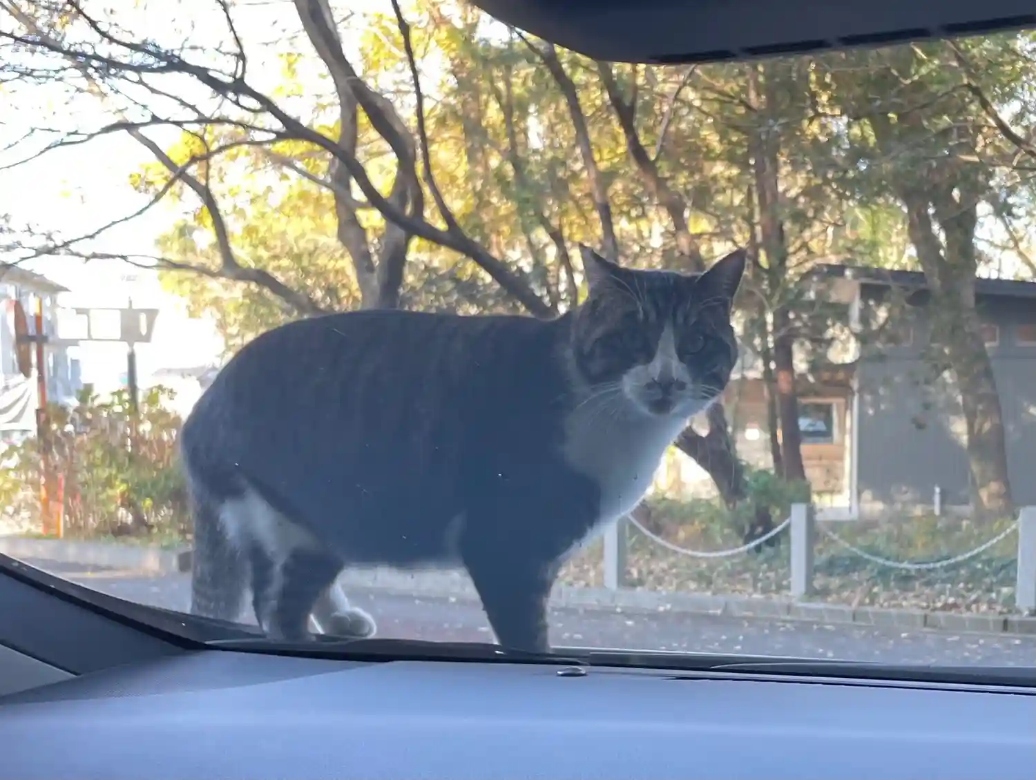 猫さんが出迎えてくれました。なかなかどいてもらえなくて困ったものでした。神さまのお使いだったのか?