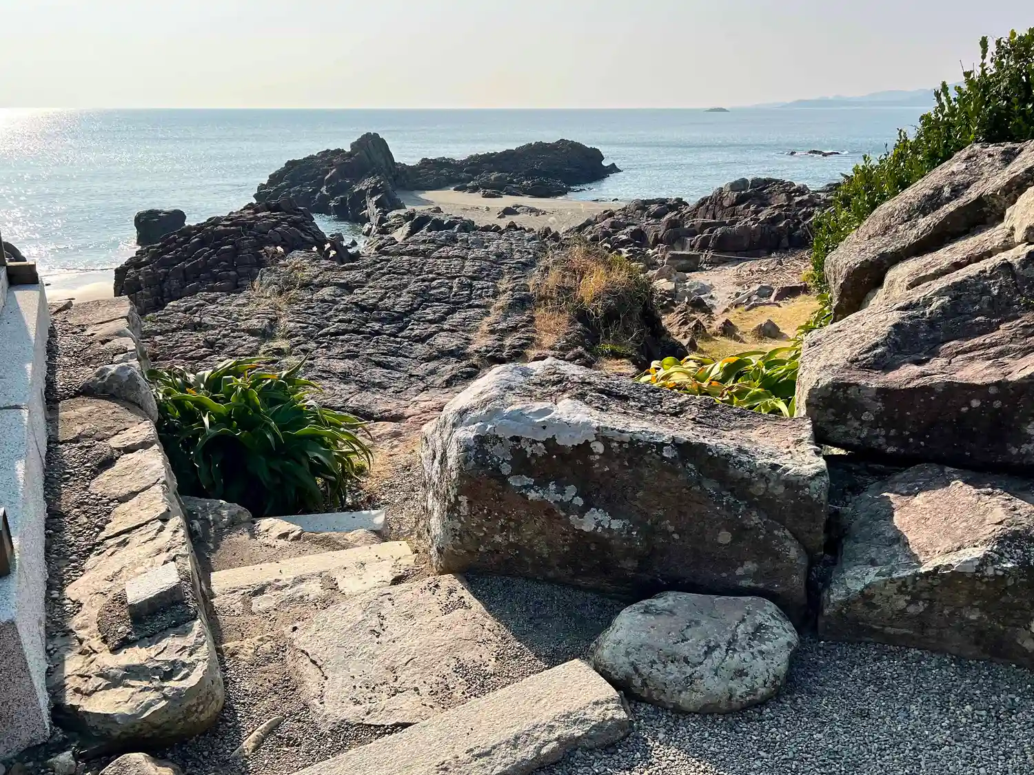 境内西側の海岸は日本一のスケールのさざれ石。