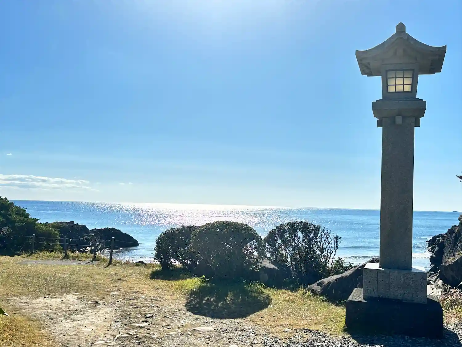 瓊々杵尊がこの上にお立ちになり、絶景の大海原を