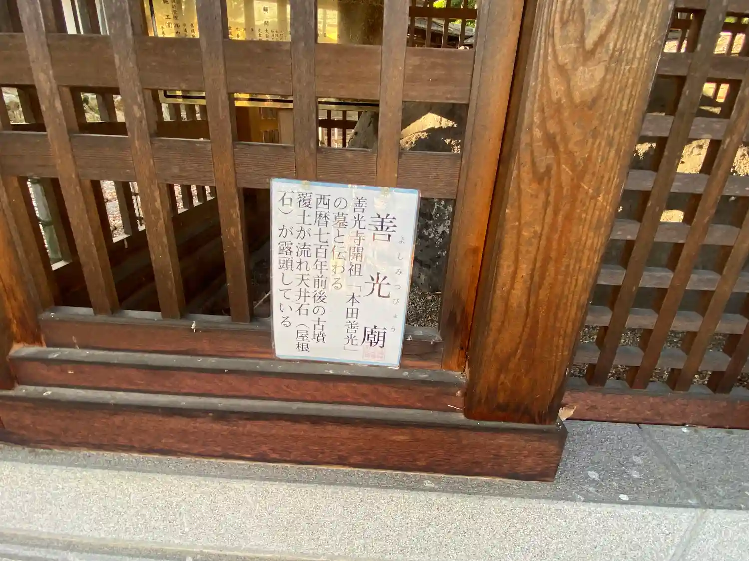 本田善光の墓とされています。以前の発掘調査で人骨が出ています