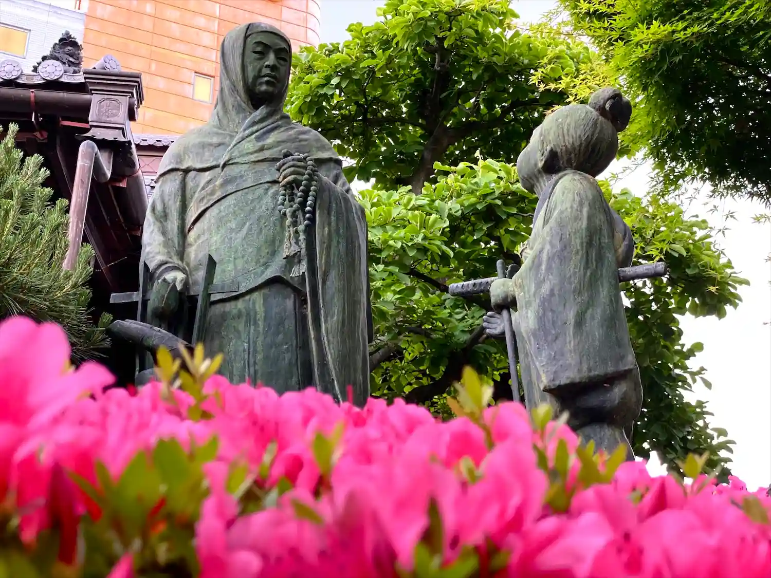 苅萱伝説の苅萱道心と石童丸親子の銅像
