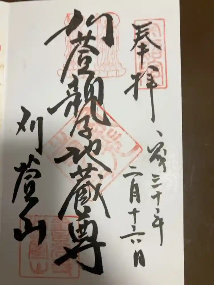 御本尊「刈萱親子地蔵尊」の御朱印をお書入れ頂きました。