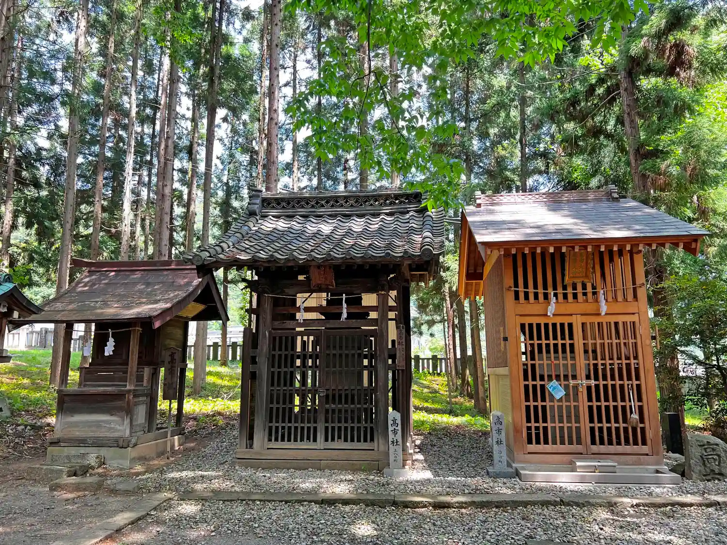 左から順に<高市社(中町)>、<高市社(上八日町)>、<高市社(治田町)>。