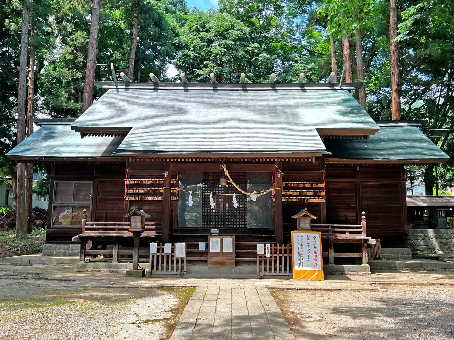 <拝殿>全景。神明造の建物に翼殿が付いた珍しい造形。