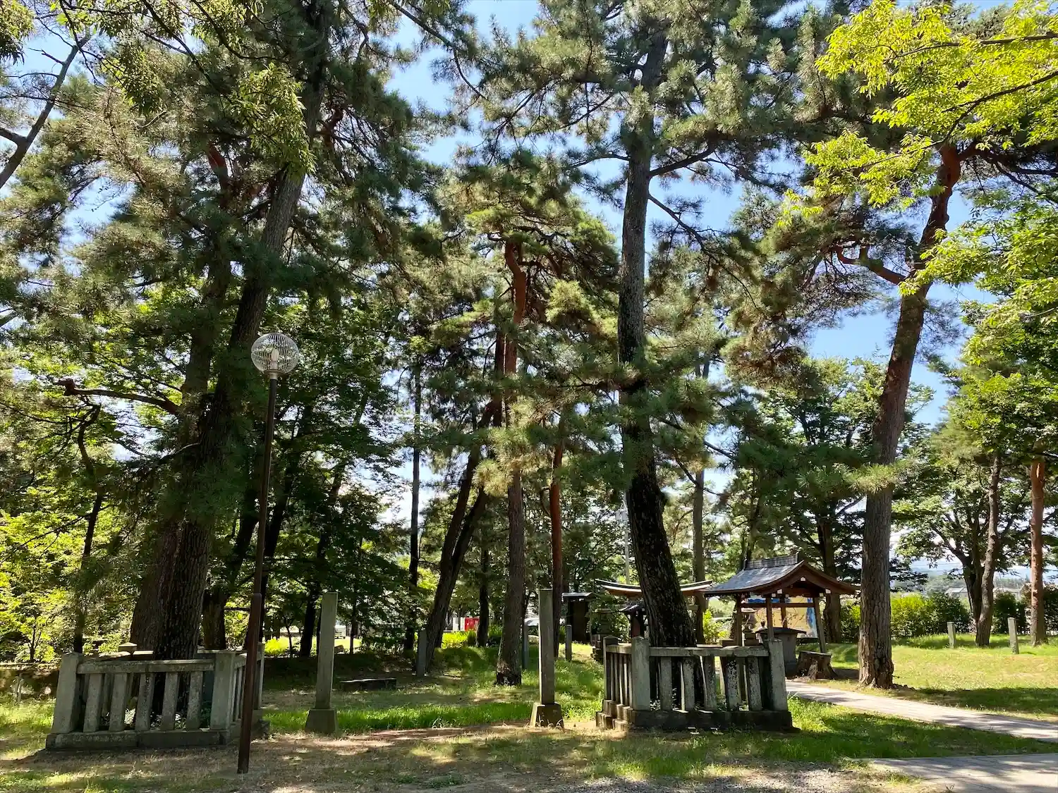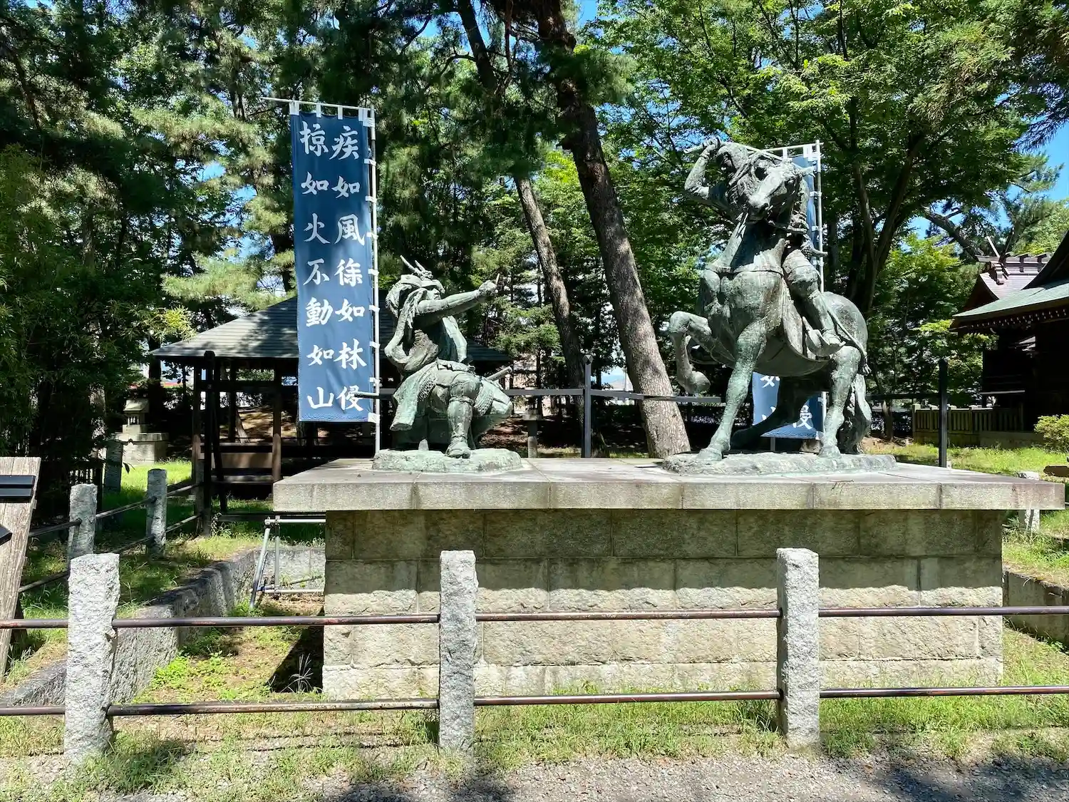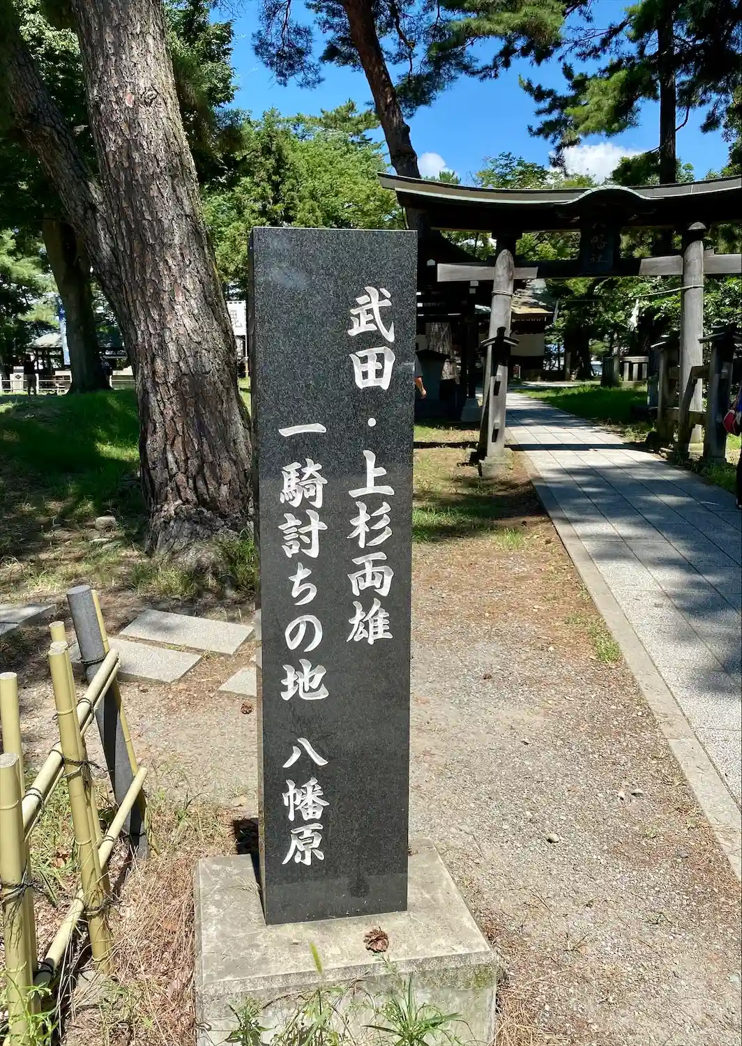 武田信玄と上杉謙信の戦いで有名な川中島古戦場跡にあり、境内では武田軍が勝鬨を上げたと伝わる。
