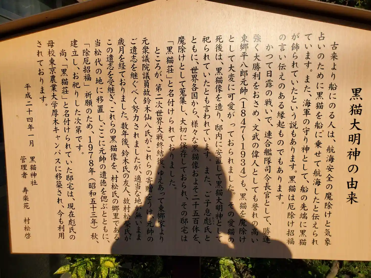 古来、黒猫というのは航海安全の魔除けとして船に乗せられていたそうで、東郷平八郎元帥も黒猫を愛してやまず、一匹の黒猫を大変可愛がっていたそうです。
