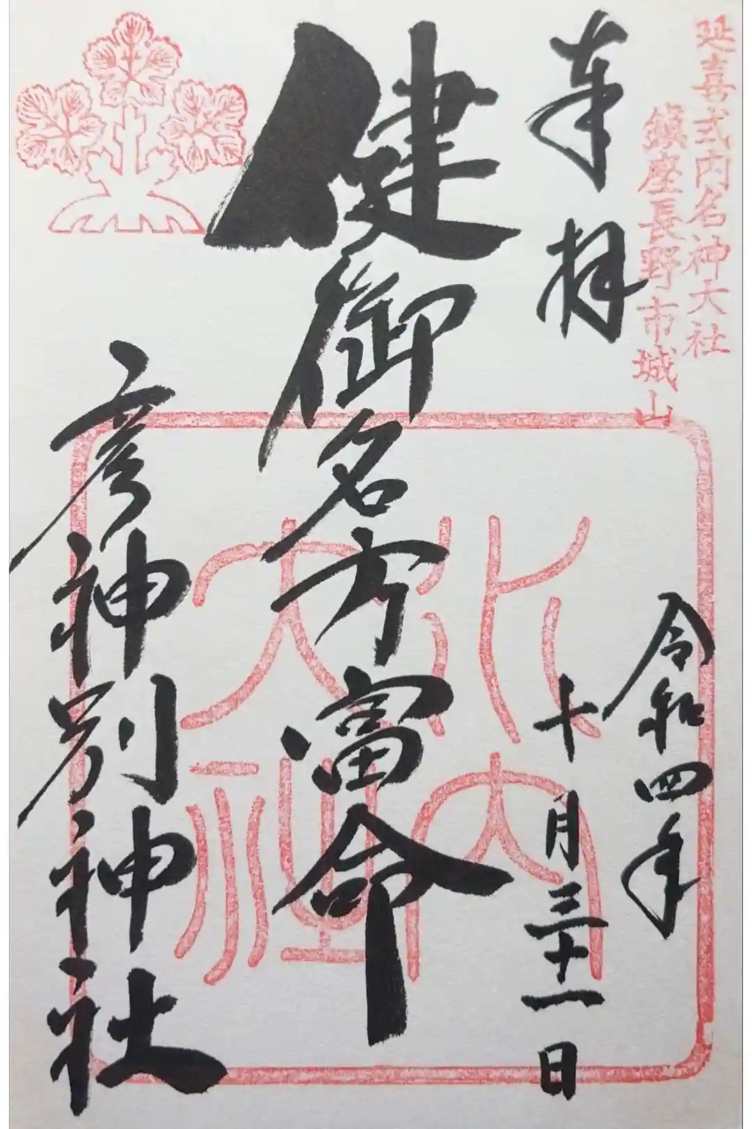 ※当社は武井神社(長野市長野東町)が兼務しているため、御朱印は武井神社で拝受できる。