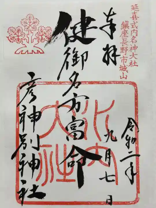 楽しみ方健御名方富命彦神別神社のお参りの記録(1回目)