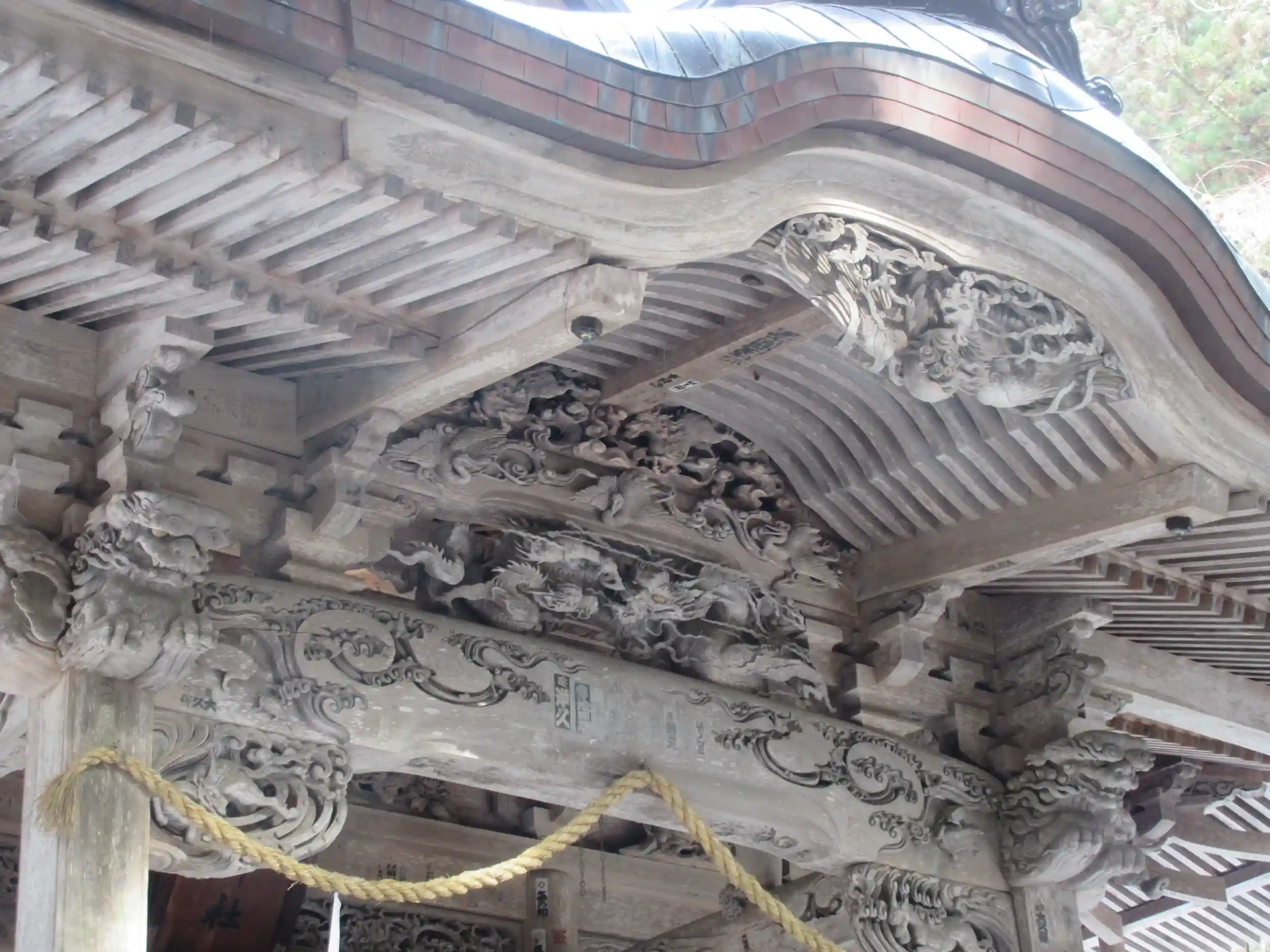 戸隠神社五社巡り。最初に参拝した御社殿は「宝光社」です。白地に菊の紋が描かれている幕が掲げられ「戸隠神社」と額が掲げられています。向拝に施された装飾の龍も思わず感嘆してしまいました。御朱印は、宝光社のみを頂き、次の目的地「火之御子社」へ向かいました。当日は粉雪が舞い落ちる「神道(かんみち)」を徒歩で向かい、とても幻想的な体験ができました。