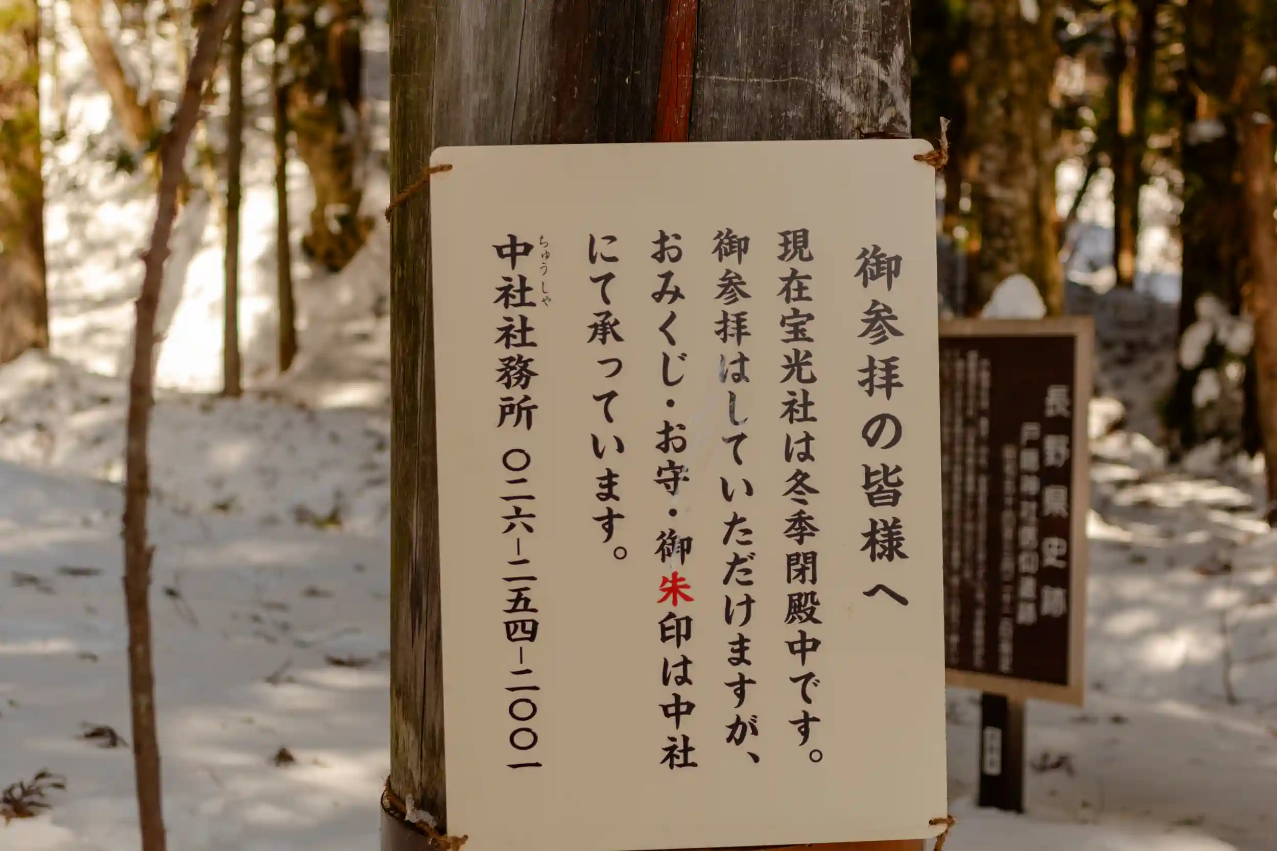 冬期は奥社と九頭龍社が中社に合祀されているため、中社の参拝を行えば3社分の御朱印を神雪参りの印付きで頂けます。