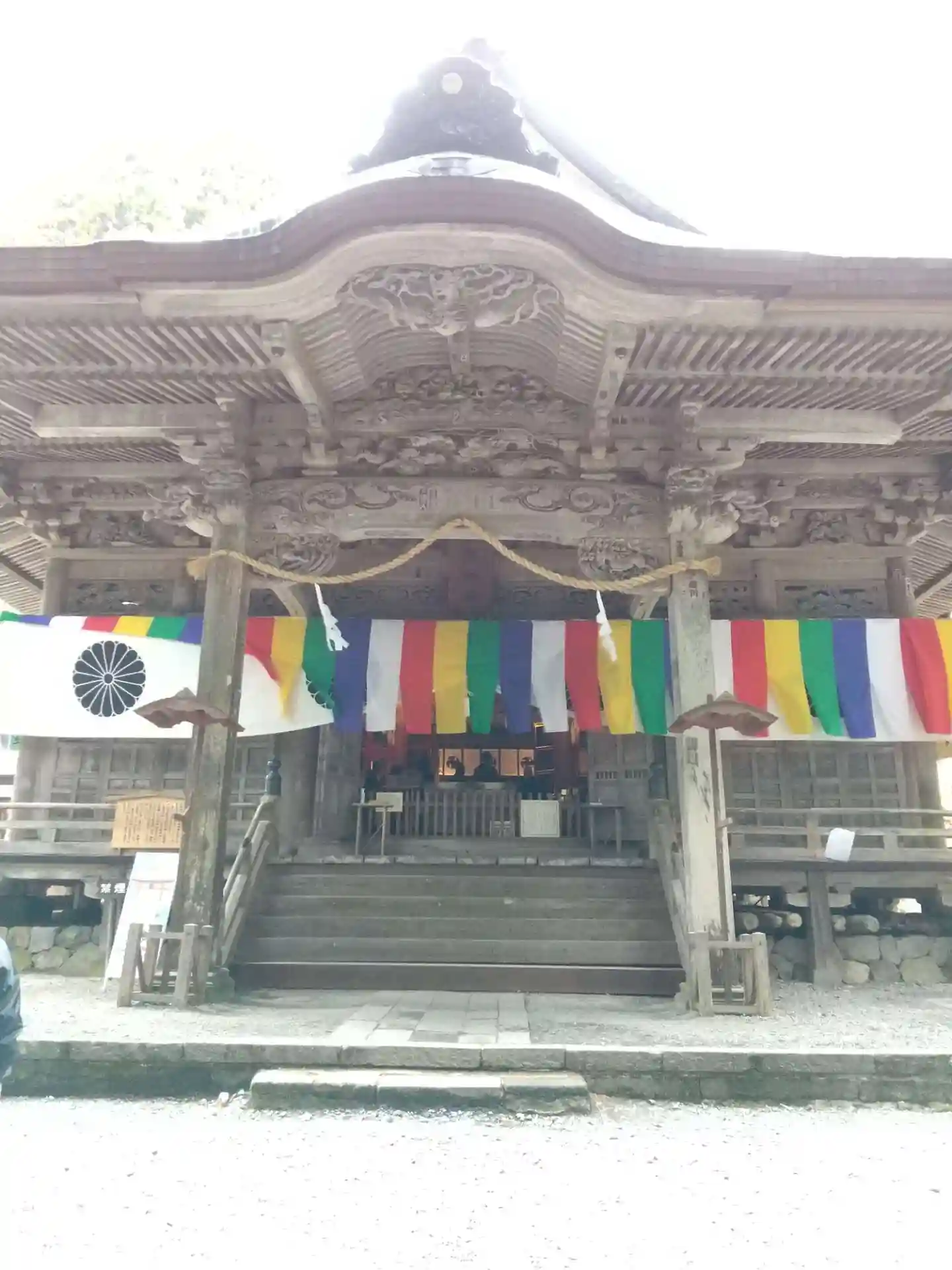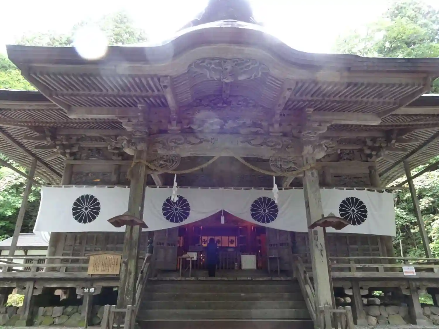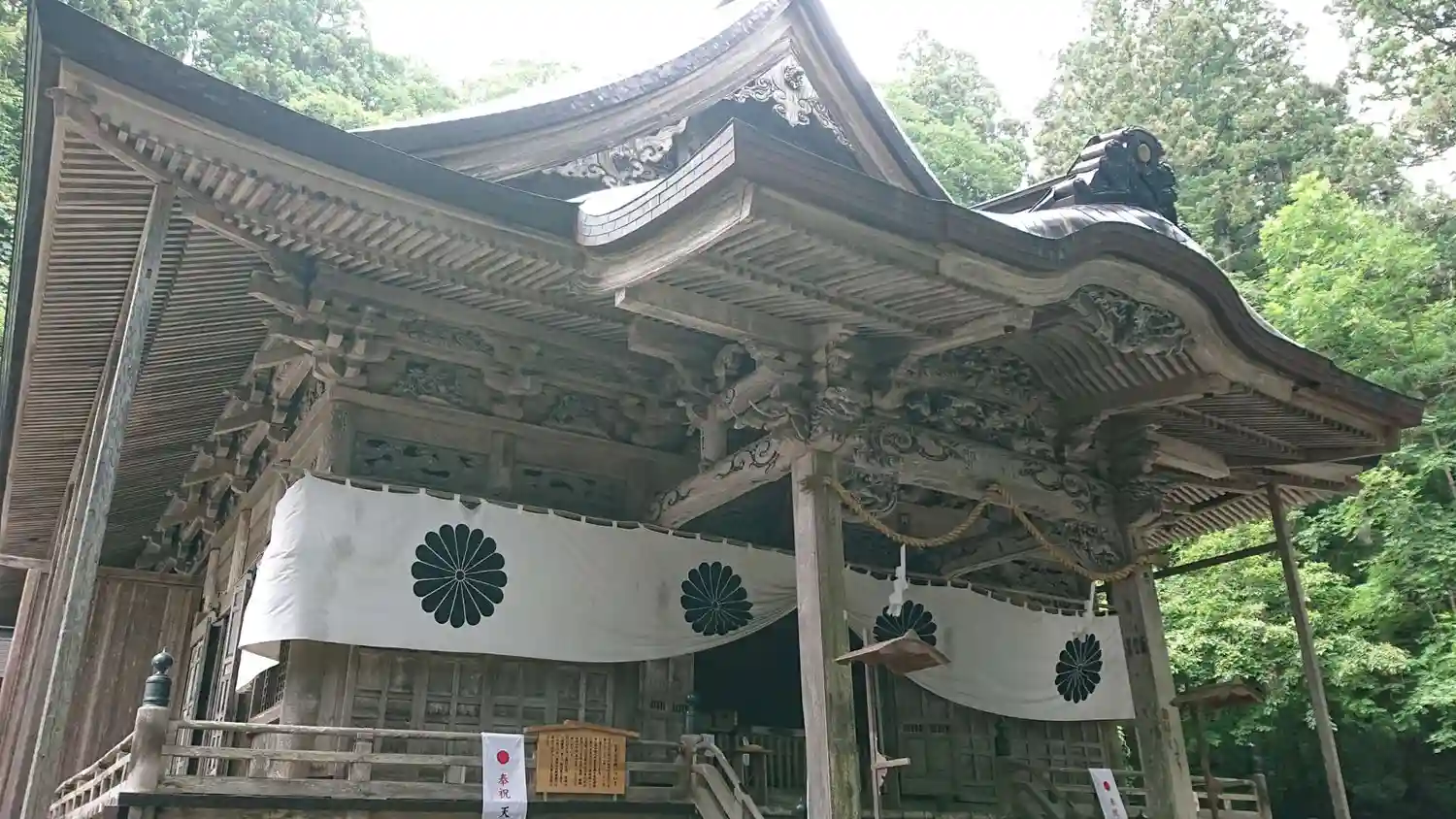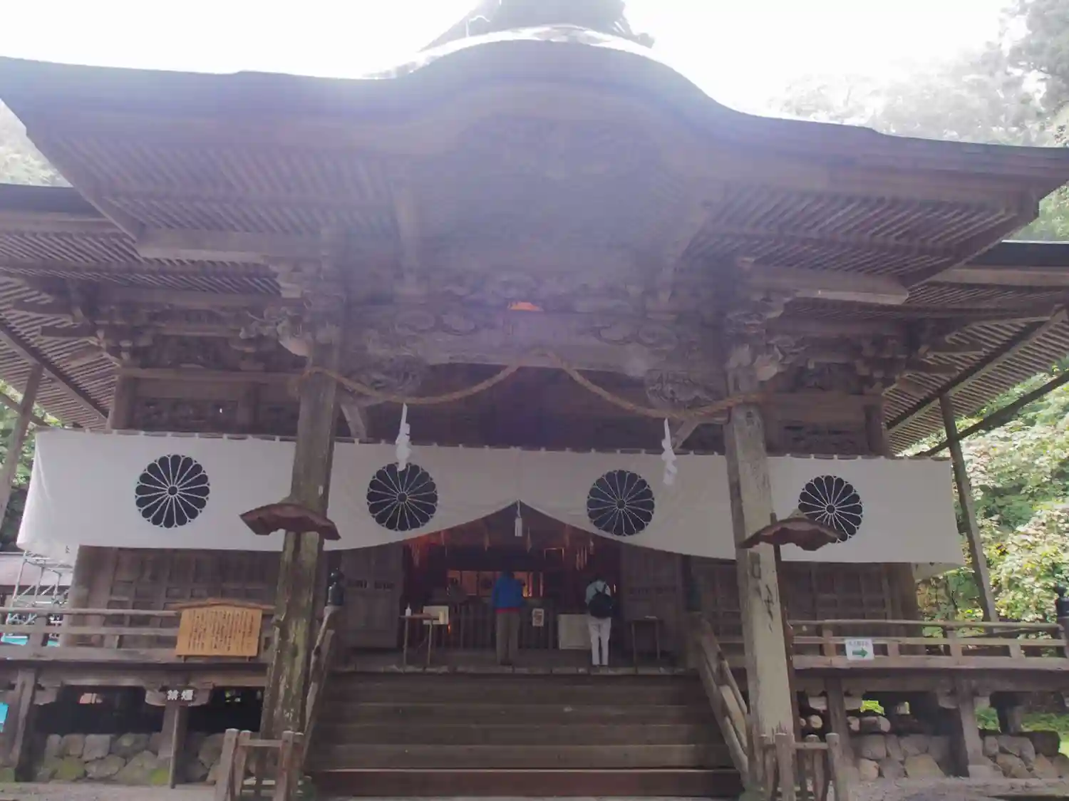 戸隠神社五社巡り。最初に参拝した御社殿は「宝光社」です。白地に菊の紋が描かれている幕が掲げられ「戸…