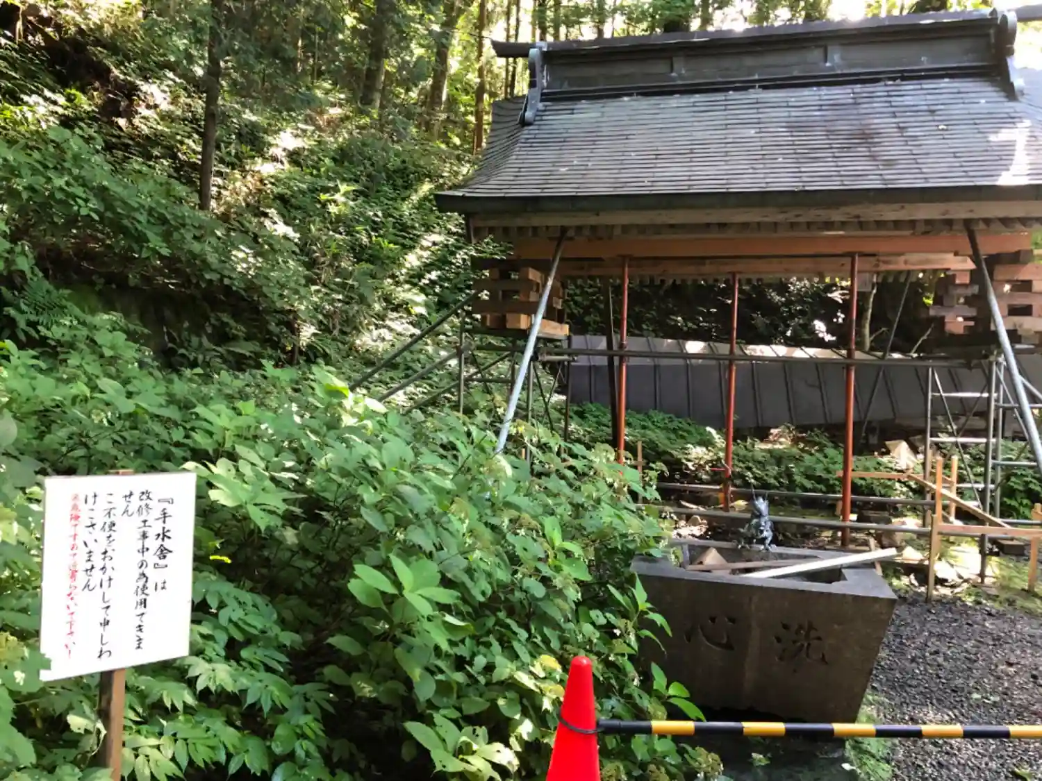 参道右手の<手水舎>。参拝当日は工事中。