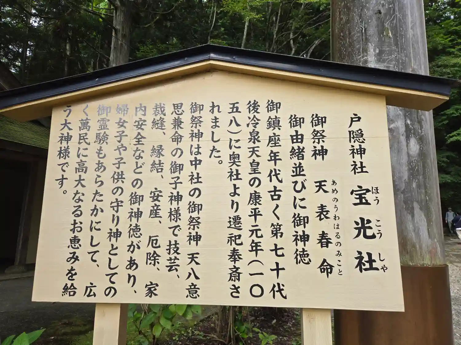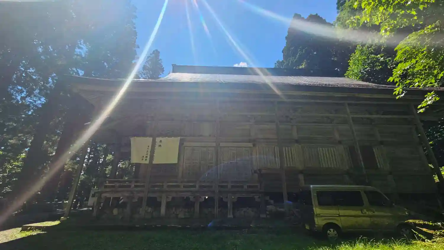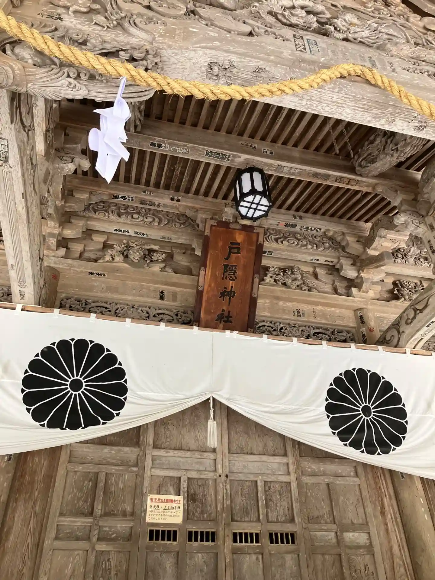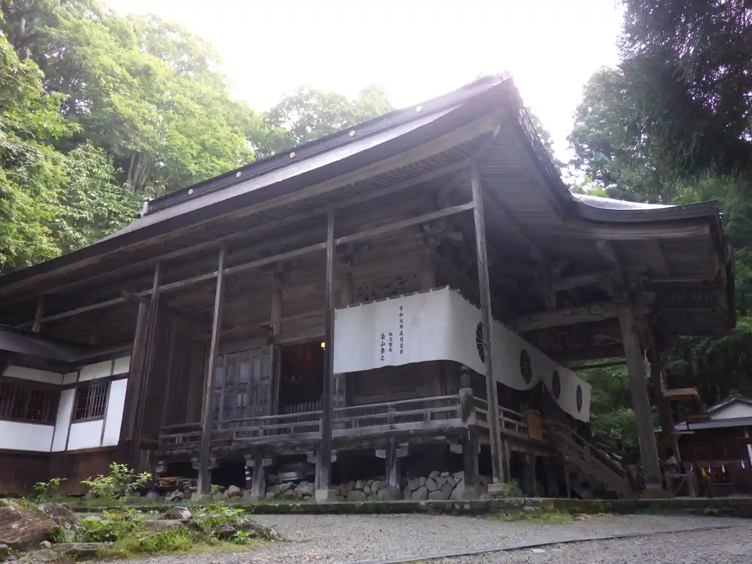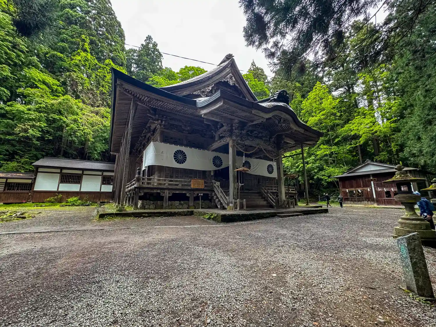 戸隠神社五社巡り。最初に参拝した御社殿は「宝光社」です。白地に菊の紋が描かれている幕が掲げられ「戸…