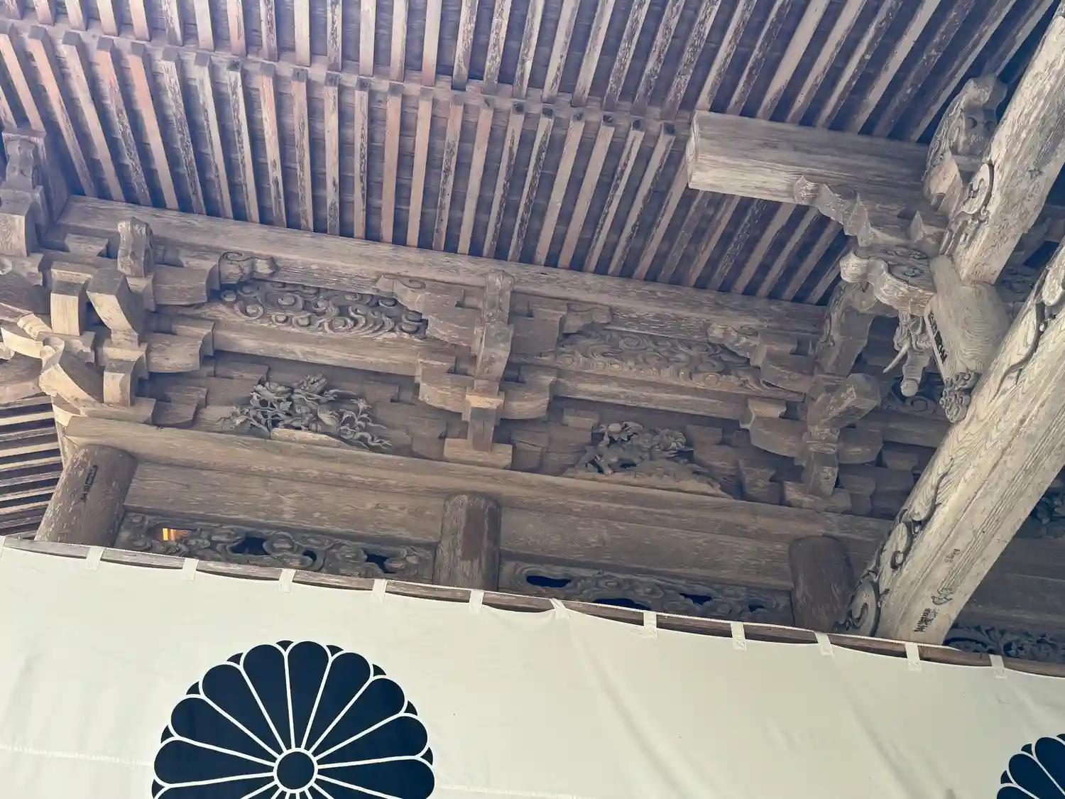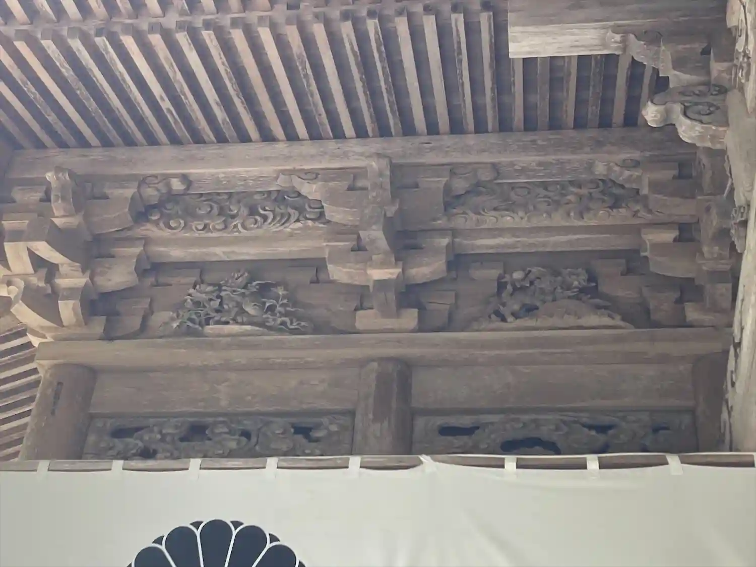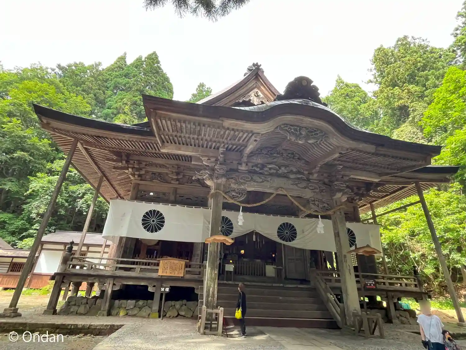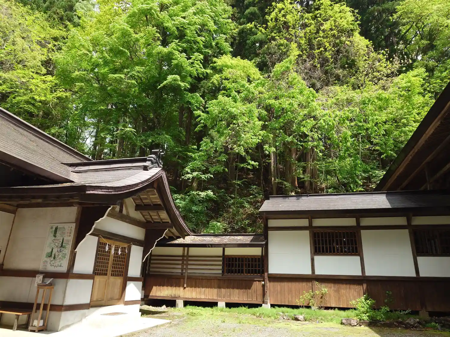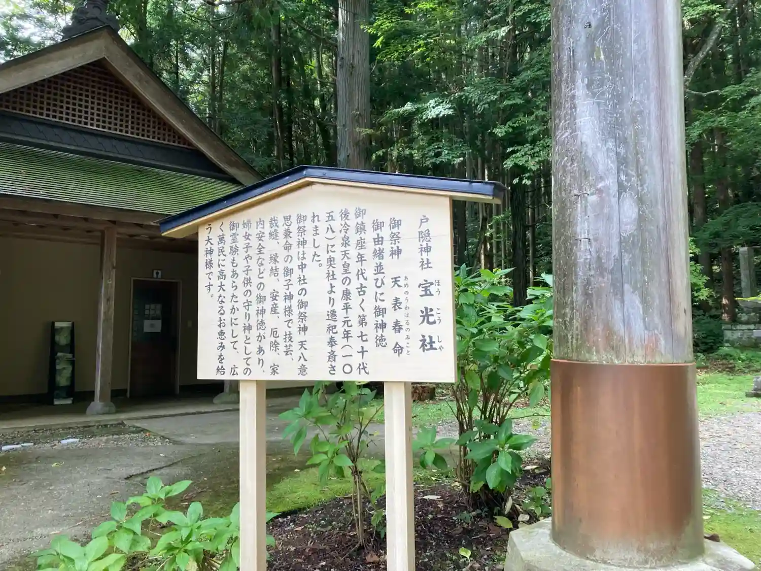 戸隠神社五社巡り。最初に参拝した御社殿は「宝光社」です。白地に菊の紋が描かれている幕が掲げられ「戸…