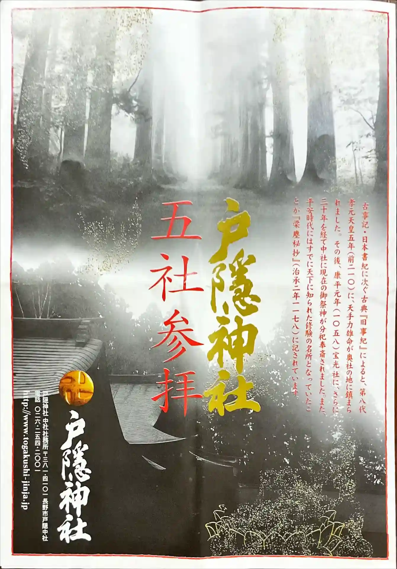 戸隠神社宝光社近くの宿坊より戸隠神社御神札、御神籤、社報をいただきました。