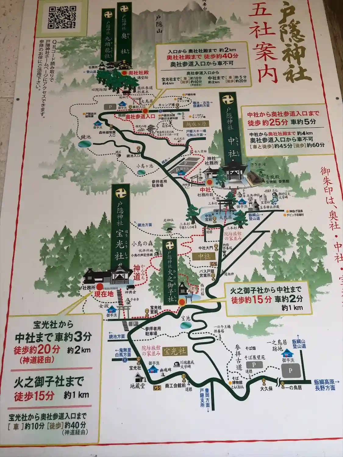 ・長野駅からバスで約1時間で宝光社に着きます。ここから登って五社を巡ります。…