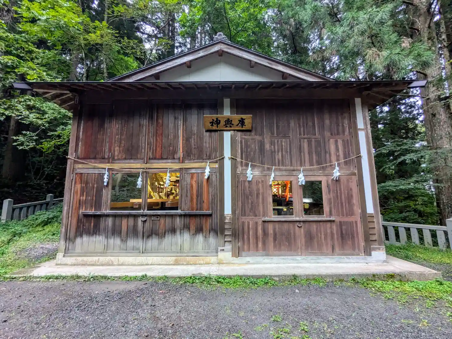 拝殿に向かって右方向にある<神輿庫>。神輿が2基収められている。